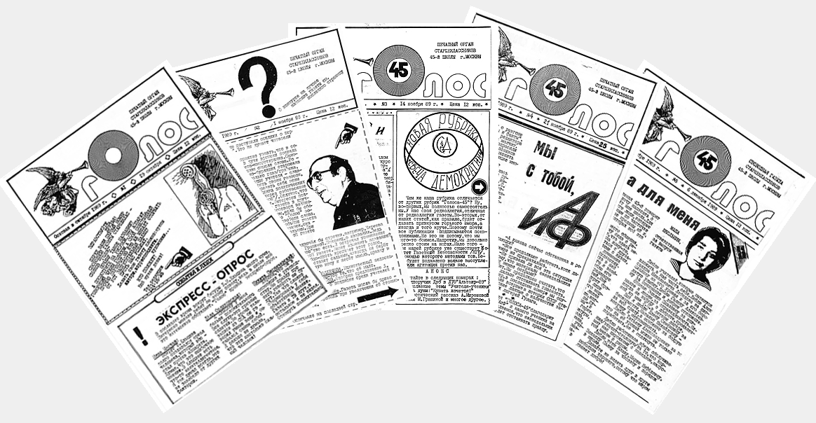 В рамках подготовки празднования 60-тилетия нашей школы частично восстановлен архив «Свободной газеты старшеклассников 45-й школы „Голос“», выходившей в 89–92 годах прошлого столетия.