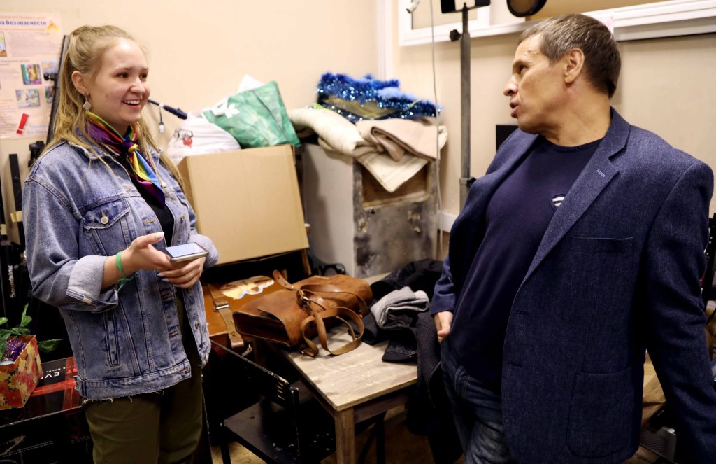 Роман: А кино интереснее. Я вот иногда хожу на показы — актёры или коллеги зовут, — ходить в театр это нормально, но скажу честно, такая нудятина. Редко какой театр сможет по-настоящему восхитить сейчас. А кино круче, здесь больше возможностей, больше пластики (крупный план, средний план). Вы знаете почему операторы не ходят в театр? 2 часа общий план смотреть вообще невозможно. Ну вот у вас я на некоторые постановки хожу и часто ловлю себя на мысли, что мне нравится. Последнее, что я смотрел — «Двор как уходящая натура», вот честно, мне очень понравилось. Я прямо-таки получил удовольствие. Осмелюсь сказать, что именно таким должен быть театр. Опять же у меня были какие-то свои замечания, но это уже к режиссеру. Но режиссер (Александр Маннин) сделал вот так, это законченная вещь и просто приятно и интересно смотреть. Недавно был в театре одном и всё действо на сцене думал: зачем я туда шёл? То есть я просто не понимал, что происходит на сцене. Постановка яркая, навороченная, но зачем всё это, если смысла нет? Что хотел сказать режиссёр, что сценарист? На эти вопросы я так и не удосужился получить ответа. Но зато всё дорого-богато… Однако могу порекомендовать театр Петра Фоменко. Хороший, крутой театр.