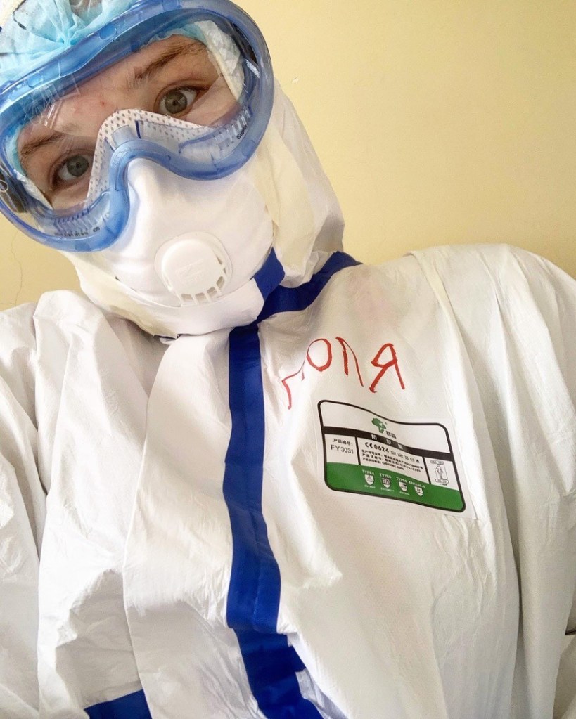 Из средств индивидуальной защиты у Полины был так называемый «Каспер» (противочумной костюм), разных видов респираторы, маски, которые, разумеется, обрабатываются, специальные шапочки, 2 пары перчаток (при работе с пациентом надеваешь 3 пару) и одноразовые бахилы (плотнее, чем обычные). При выходе это всё снимается, стерилизуется, а что нельзя продезинфицировать — утилизируется. После каждого выхода из красной зоны, каковых было два за смену, практиканты принимали гигиенический душ.