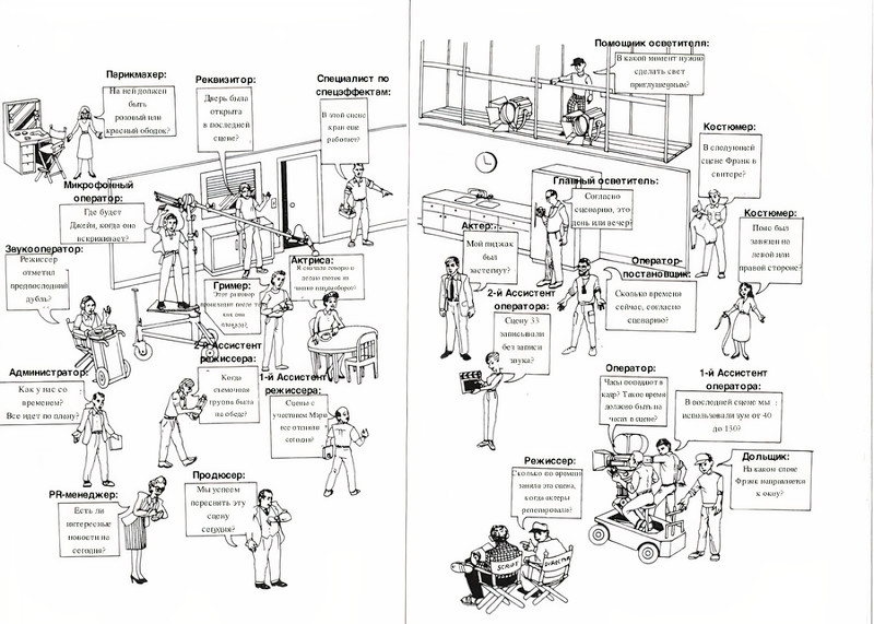 Следующая интересная профессия — это скрипт-супервайзер. Возможно, ученики нашей Школы уже слыхали слово супервайзер, но здесь его задача немного отличается. Работа «скрипта» начинается задолго до начала съемок. Он внимательно изучает сценарий каждой серии и пытается найти мотивацию у героев, поставить на их место обычных людей. На самих же съемках он сидит на плейбэке (место, в котором находятся мониторы, на которые идет трансляция с камеры). Скрипт записывает все детали, происходящие во время съемки — какой рукой и на каких словах героиня помахала, на каких словах вышла, кто был слева, кто справа, как лежали волосы. Все это нужно, чтобы когда снималась следующая по сценарию сцена, она была монтажной — то есть все моменты для склейки были без ляпов. Например, если героиня вышла из комнаты, открыв дверь правой рукой, а в следующем кадре она уже открывает дверь левой рукой — это ошибка скрипта.