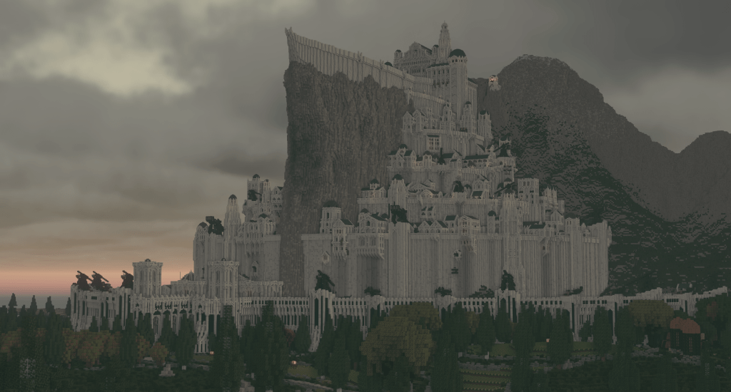 Минас Тирит – крепость и столица Гондора в книге Дж. Р. Р. Толкина. Данная постройка воссоздана с тщательной правдоподобностью, в самой игре конструкция выглядит еще грандиознее.