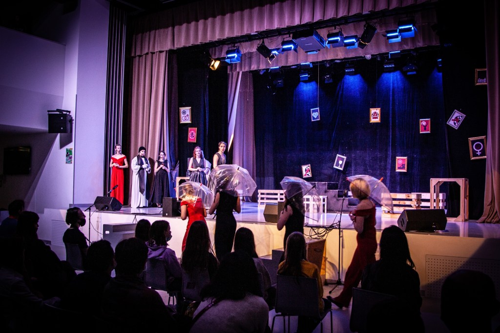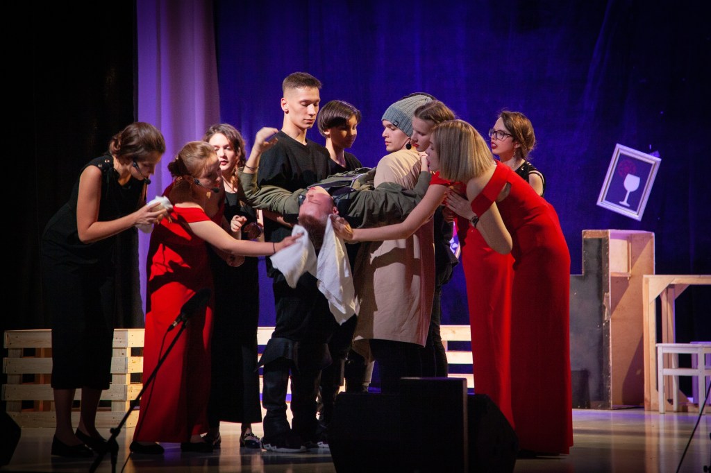 Остановившись у лектория, я подняла свой взгляд на сцену: в экспрессивно репетирующих на сцене лицах я узнала своих одноклассников из родной 45 гимназии и поняла, что мне необходимо попасть на премьеру этой постановки…