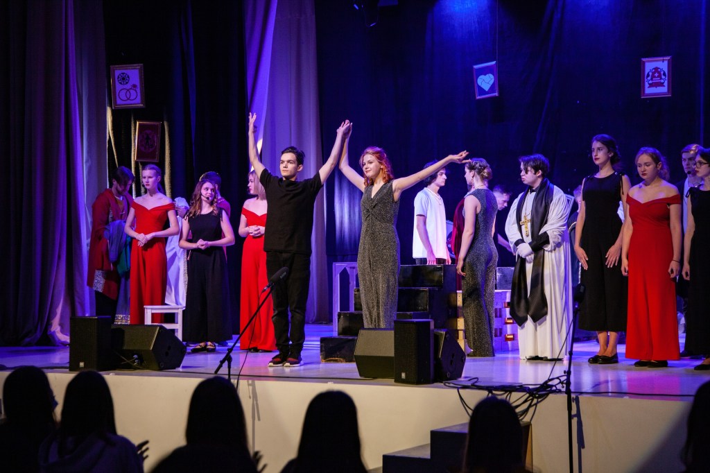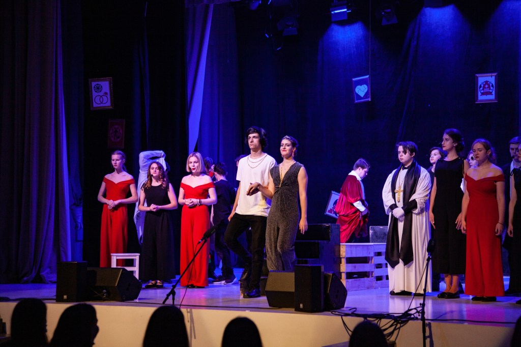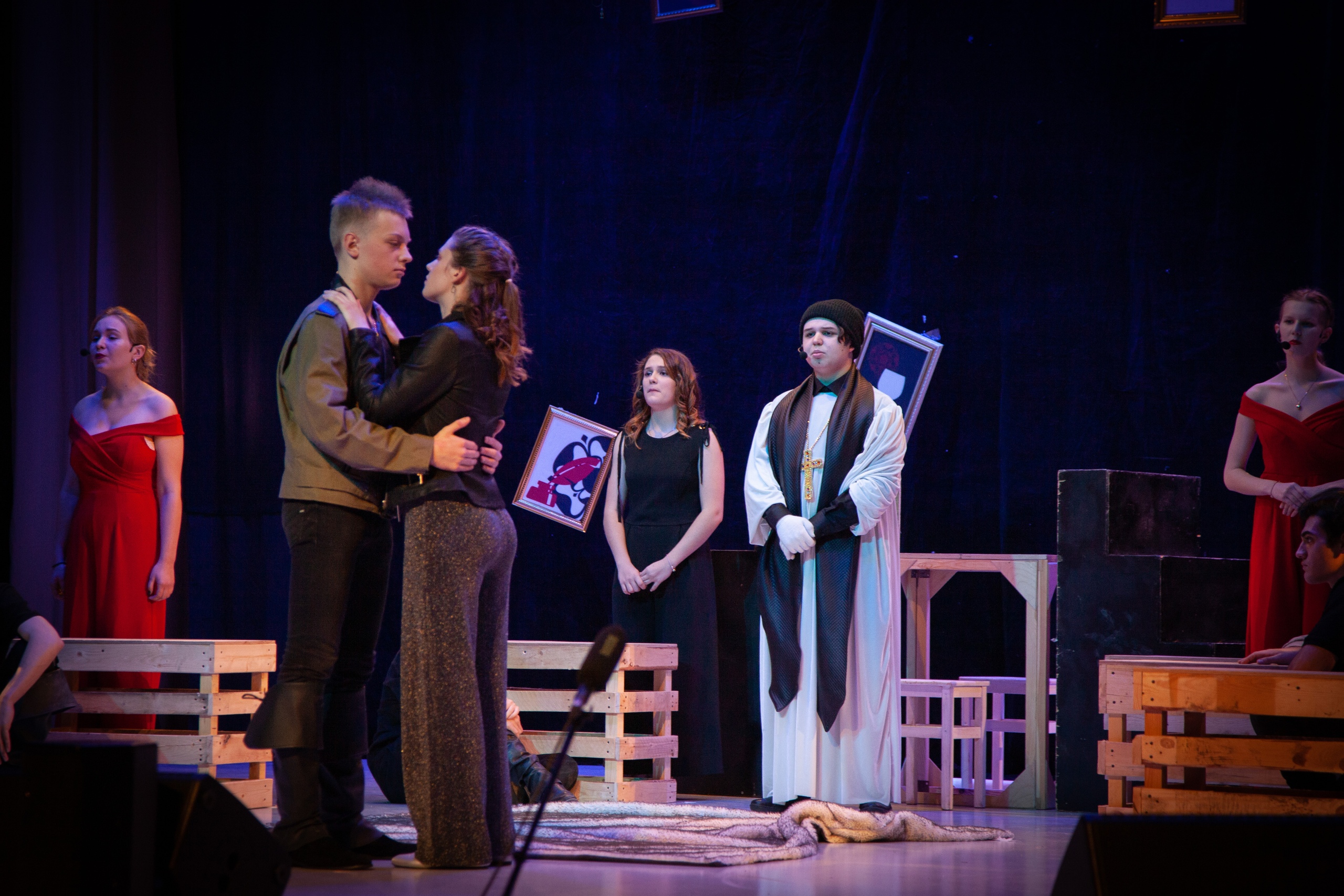 Начать стоит с того, что этот спектакль мы готовили действительно долго — с прошлой весны (с перерывом на лето), и, как мне кажется, в этом были свои плюсы. Когда мы ограничены по времени в постановке спектакля, часто приходится уделять много времени тому, чтобы заучить текст, запомнить все передвижения по сцене, смены декораций и так далее. Здесь же, поскольку большинство из этого было выстроено еще в прошлом учебном году, у нас была возможность отдать приоритет другим вещам — например, сохранению настроения тех или иных сцен, попаданию в характер персонажа, работой над образами. И, как мне кажется, это сделало нашу работу намного более интересной и запоминающейся. Кто-то переосмыслил спектакль за это время, кто-то нашел в нем что-то новое, интересное для себя.