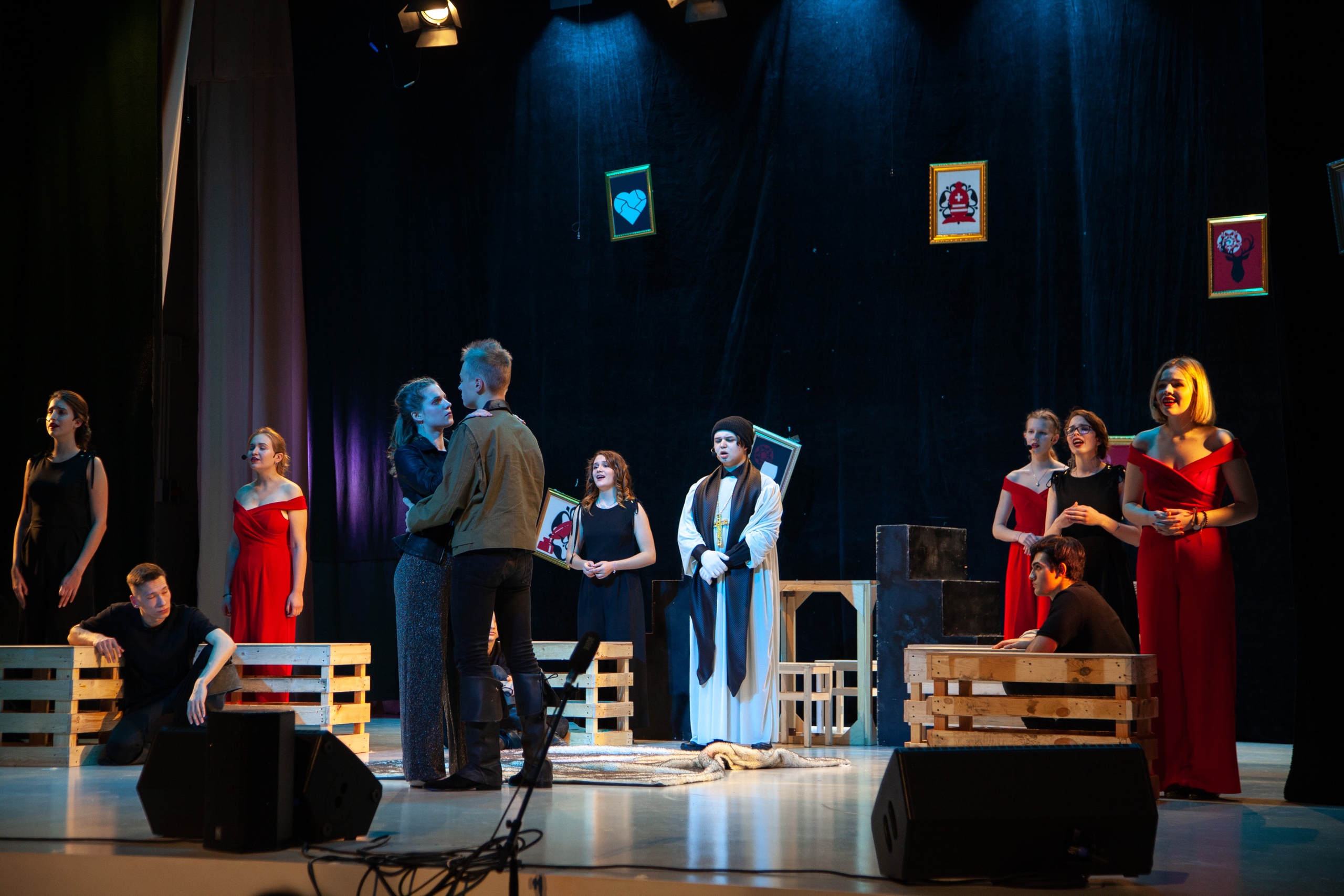 Спектакль начали ставить ещё в марте (да-да, ещё до карантина). На этот раз актерской труппе вместе с ее режиссёром пришлось несладко. Из-за отсутствия постоянной сцены в школе приходилось арендовать репетиционный зал, репетировать в зуме, а позже искать сцену, на которой будет возможность показать спектакль. В постановке задействованы 22 актера. Среди них и школьники, и выпускники, и родители. Для выступления были написаны тексты песен и поставлен танец.