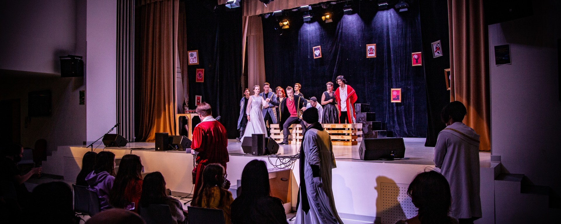Остановившись у лектория, я подняла свой взгляд на сцену: в экспрессивно репетирующих на сцене лицах я узнала своих одноклассников из родной 45 гимназии и поняла, что мне необходимо попасть на премьеру этой постановки…