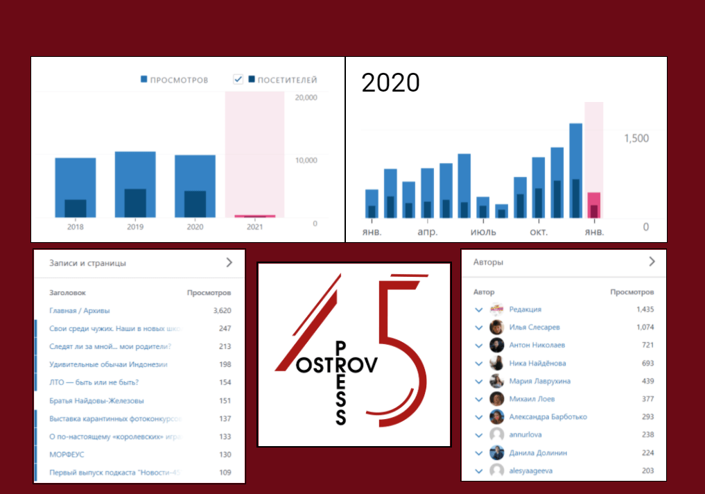 Невозможно не упомянуть другую трудность карантина и 2020 года в целом. На достаточно долгий срок мы были заперты без возможности живой коммуникации! Быстро прекратили работу парки, кафе, магазины. В общем, даже если удавалось прорваться на улицу, делать было особо нечего. Вскоре улица стала совсем недоступной. Прогулки оказались вне закона… Элитой стали дачники и владельцы собак, имевшие редкую возможность дышать свежим воздухом. Как бы то ни было, желание общаться с людьми не могло просто испариться. Заметно выросло использование мессенджеров, телефонных звонков, зум стал использоваться для общения за пределами учебы. Как бы то ни было, с ходом времени находиться в четырех стенах становилось все скучнее и грустнее. Но кое-что дарило радость мне и многим другим в это совсем непростое время. Это, конечно, «Остров». Ребята невероятно быстро приспособились к новым условиям и провели целых 67 мероприятий. Безусловно, нельзя забыть про работу редакции. Было написано огромное количество статьей, которые без труда скрашивали угрюмые вечера.