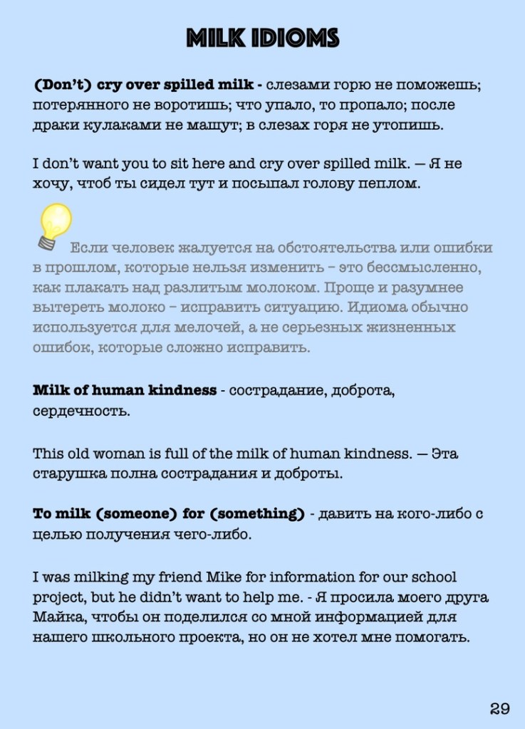В этом году Даша Иванова из 9 «Б» класса представила свой продукт — сборник самых «вкусных» английских идиом. Быть спокойным как огурец? Сливовая работа? Кусочек вишенки, или отличная возможность, доступная не всем! Смысл всех этих переведенных напрямую выражений можно узнать из сборника Даши. Скажем честно, пока мы читали этот мини-словарик, успели вспомнить все виды фруктов, овощей и ягод.