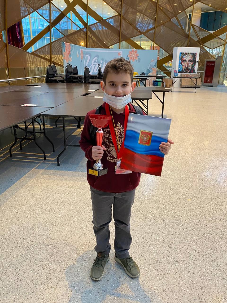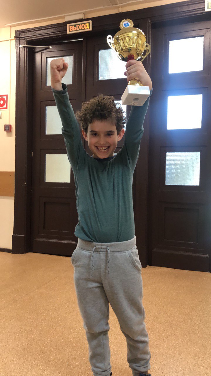 У Пети, конечно, есть опыт не только поражений, но и побед. Его самая ценная награда — 1 место на этапе кубка России по шахматам «Открытый космос».