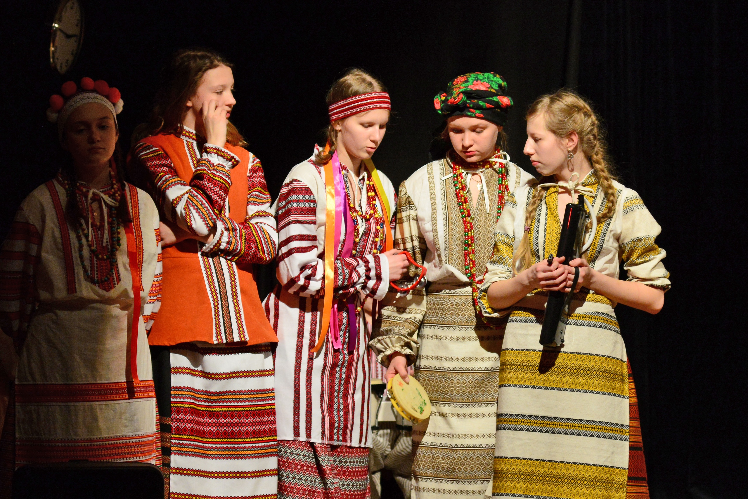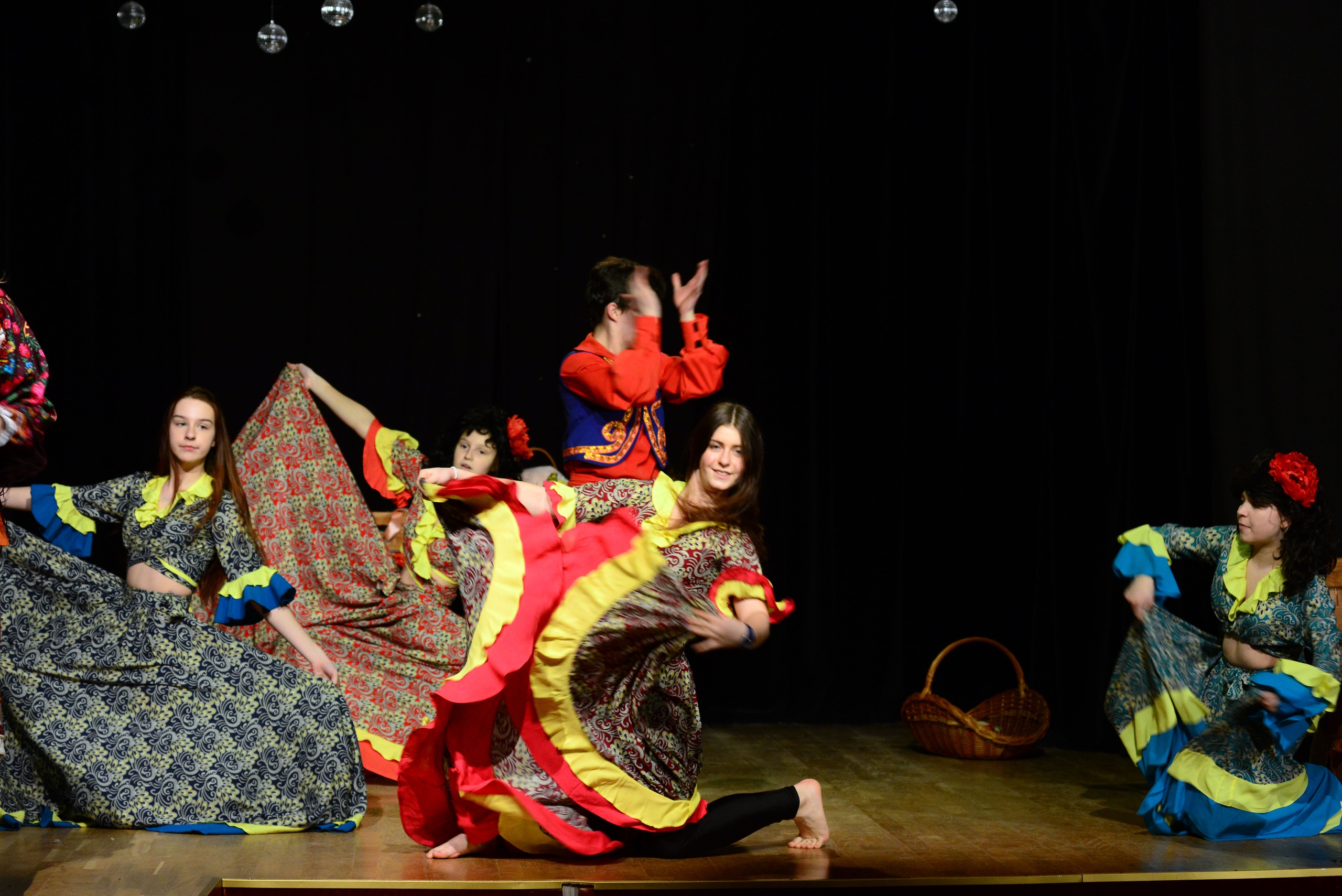 Это был спектакль «Сорочинская ярмарка». Я, Соня Рийсман и Вера Лебедева должны были за кулисами, во время одного из действий, совершить целый обряд, чтобы переодеться на финальный танец (поправить прически, обуться, переодеть платья, завязать все пояса). И нашим сигналом «на старт, внимание, марш» был монолог, после которого как раз таки и начинался танец. Все расслаблено готовились, все было нормально, кроме одной маленькой загвоздки… Монолог не прозвучал… Как только мы это осознали, мы начали очень быстро одеваться. И вот, мы уже понимаем, что через несколько секунд Лена включит музыку… Пришлось выходить на танец так: растрепанные прически, без обуви, с незавязанными поясами (честно говоря, не выходить, а выбегать, скользя по паркету).