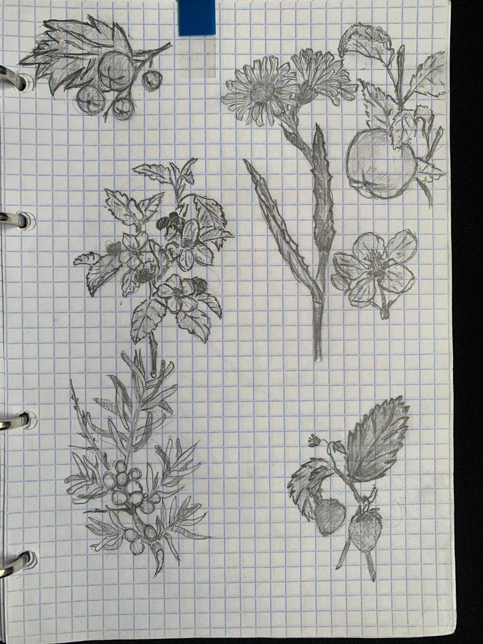 В большей степени я самоучка, но был небольшой период когда я ходила в студию, после смены там преподавателя, я поняла, что больше не хочу туда ходить и продолжила рисовать просто дома. Через несколько лет, я хотела снова возобновить занятия, чтобы развиваться дальше, к тому же моя мама очень хотела, чтобы у меня было хобби. И я занималась один на один с Аней Годуновой (это выпускница нашей школы с образованием архитектора). Если в студии меня просто сажали за холст и говорили: «рисуй!» – толком ничего не объясняя, то Аня начала учить меня основам: фигуры, тень, листья, натюрморты. Именно поэтому в итоге такие вещи у меня получаются, а вот людей, например, я рисовать совсем не умею.