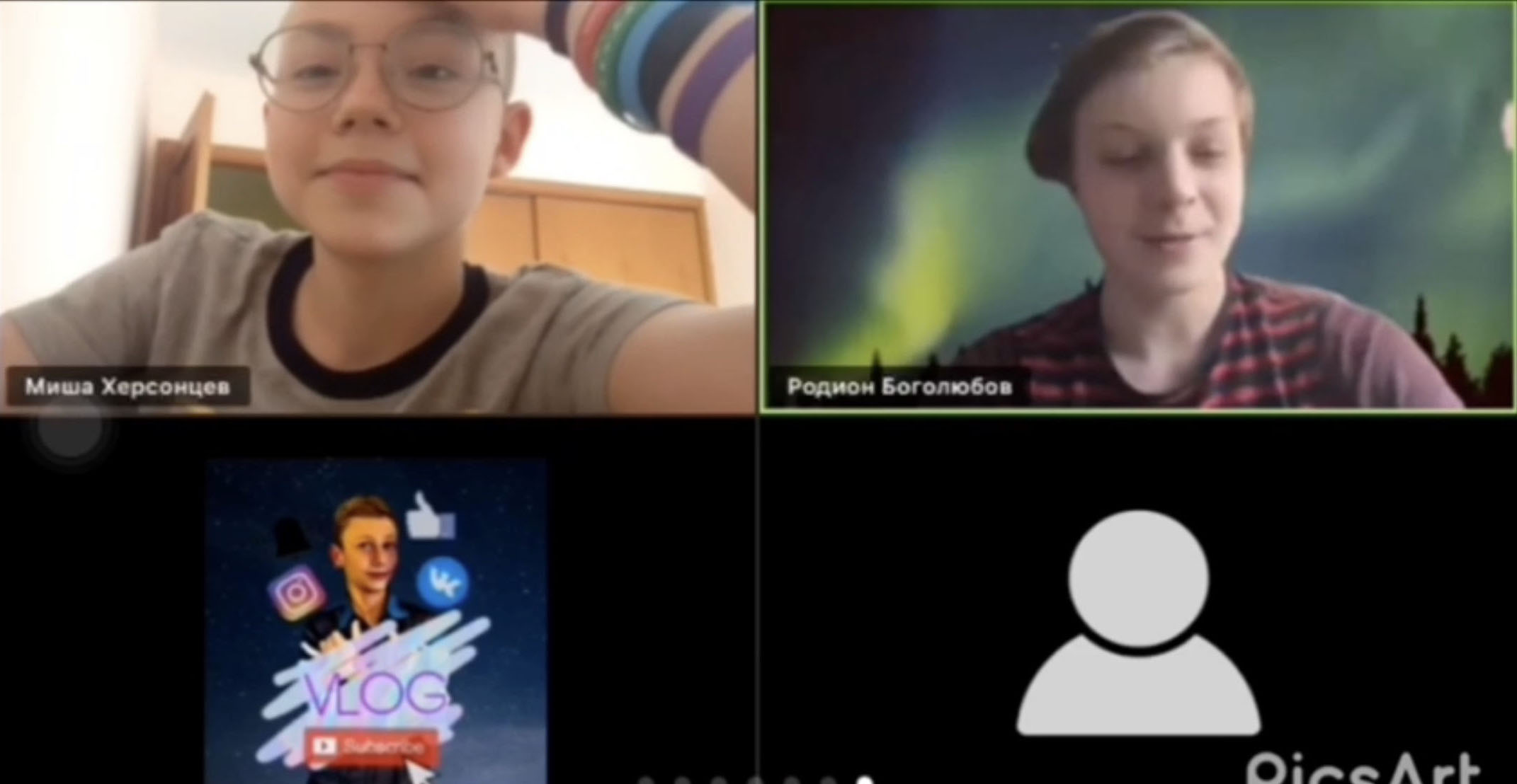 Это было в шестом классе, когда мне исполнялось тринадцать. Я была на даче, и в свой день рождения мы договорились подключиться к «книжной конференции» со моими подругами, Алиной Мижаевой и Катей Федяниной. Мы должны были обсуждать фильм, недавно просмотренный, или книгу прочитанную, кажется. И вот я открываю конференцию и вижу много-много-много окошек с разными моими супер близкими людьми (сейчас многие из них стали мне еще ближе). Было невероятно приятно осознавать, что столько любимых мною друзей поздравляют меня все вместе. Для меня, шестиклассницы, это была огромная «честь» (если можно так сказать), что все собрались ради меня. Там было что-то вроде свечки такой, персональной. Помню Илья (еще без карантинных усов) играл на гитаре… (На самом деле на гитарах играли даже целых два Ильи.)