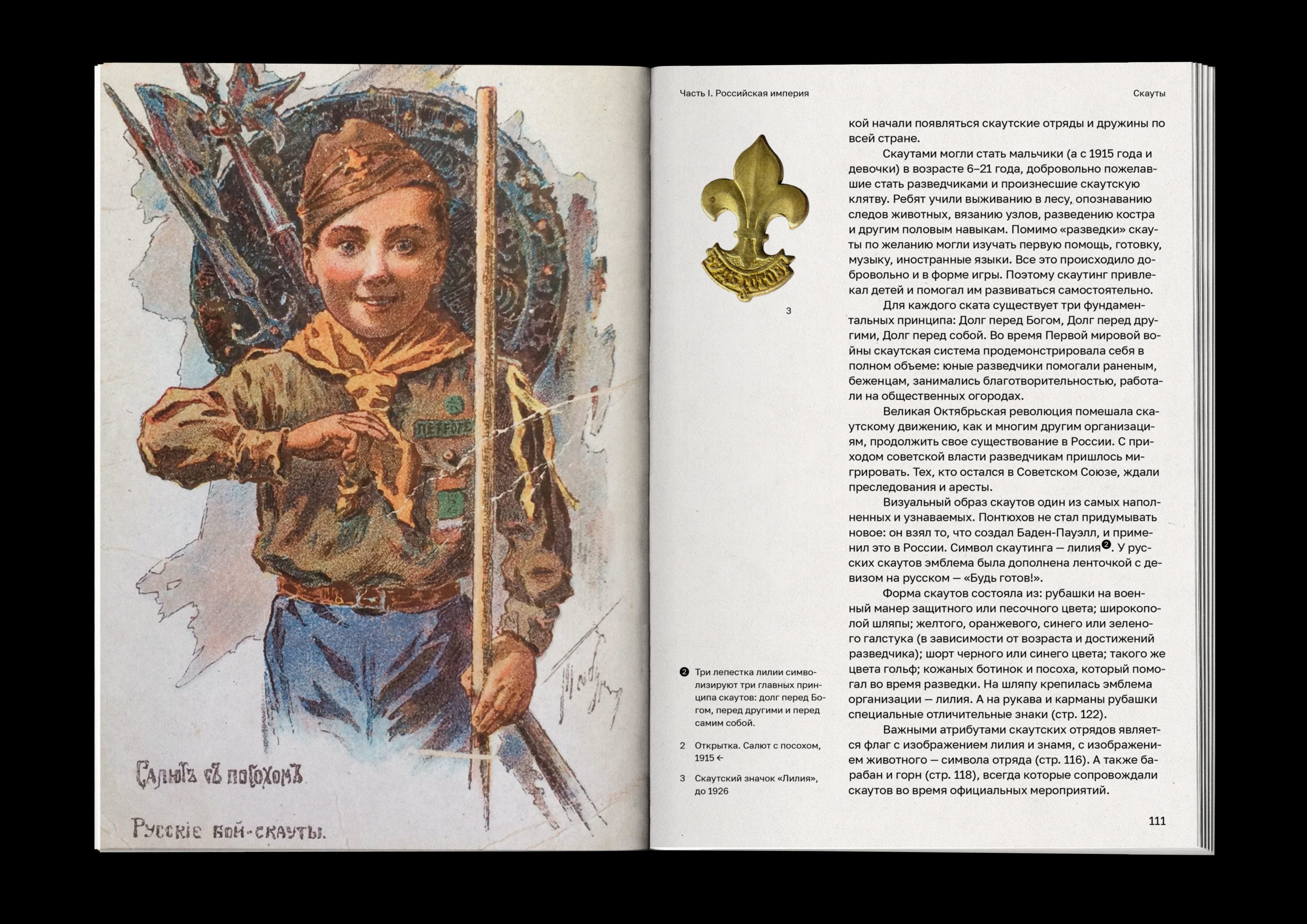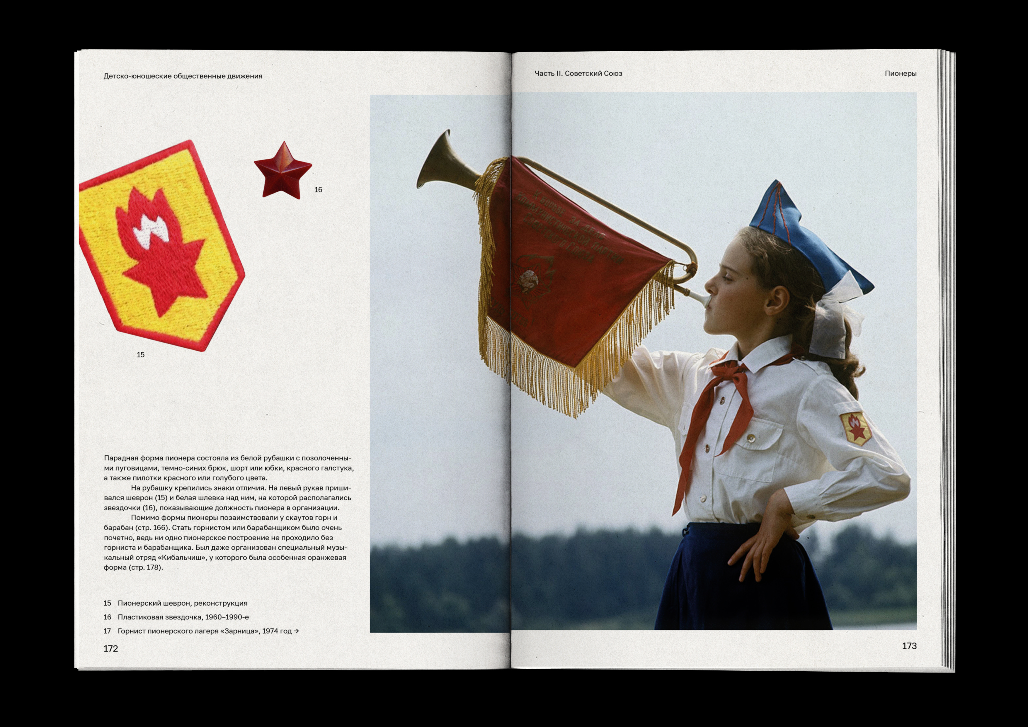 Ксюша: Дипломная работа в Школе дизайна состоит из двух частей. Первые полгода четвёртого курса ты делаешь большую книжку-исследование, чем я тоже занималась. Чтобы понять, в какую сторону двигаться в дизайне «Острова», мне важно было изучить детско-юношеские организации в России: как они выглядели и выглядят. Я начинала с организаций, созданных в Российской империи, и закончила современными. Получилось почти 300 страниц книжки. Информации про то, как выглядят детско-юношеские организации сейчас, довольно мало и ее очень сложно найти. Я лазила по группам ВКонтакте, по сайтам школ и, мне кажется, что все локальные организации, которые могли бы быть маленькими «Островами», поглотило «Российское движением школьников». По сути, у этих организаций нет личного брендинга. Они носят бренд «РДШ», а социальные сети практически никак не оформляют. На афишах у всех разные логотипы, обычно рисованные, которые напоминают, наверное, самый первый логотип «Острова». Я бы даже сказала, что островной логотип был более качественно продуман, чем те, которые я наблюдала. Есть пара пионерских организаций, которые отвалились от основного движения: «Сигнальщики», «Каравелла», «Пионерская организация имени Гайдара» — совсем немного организаций, которые я могла исследовать визуально.