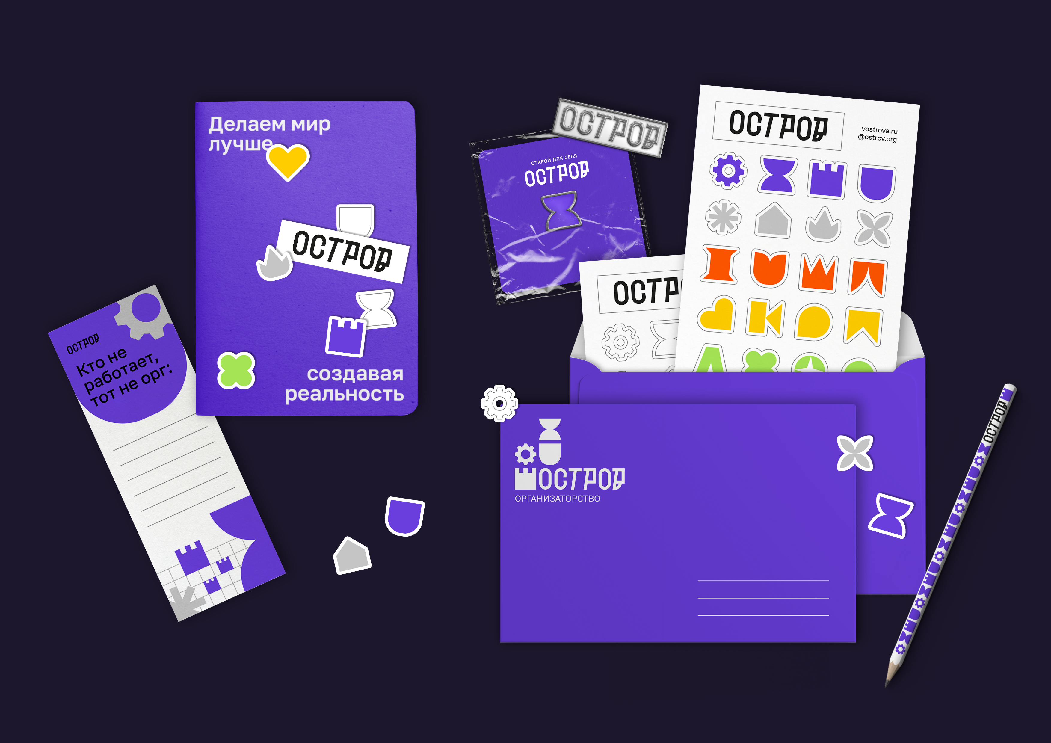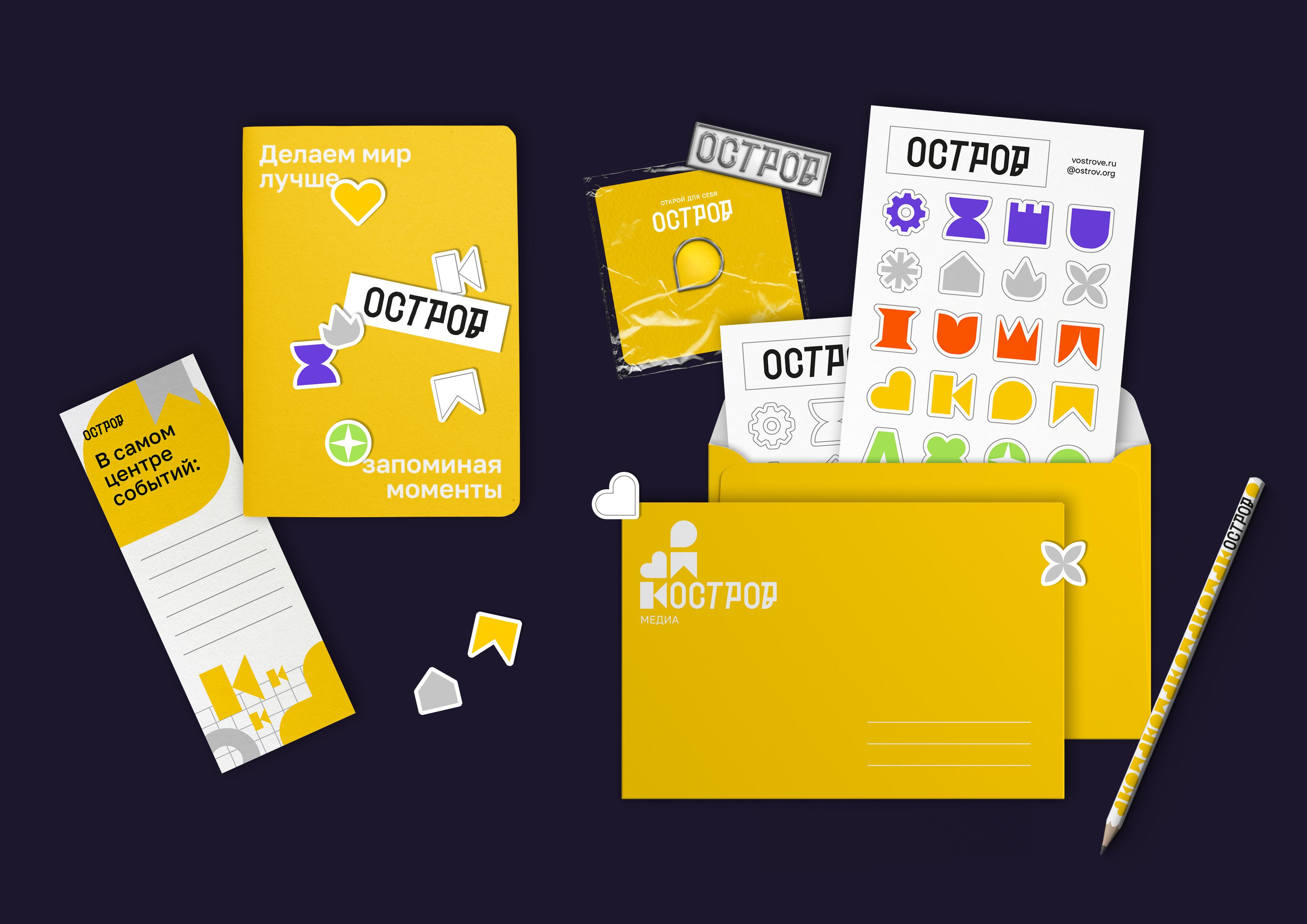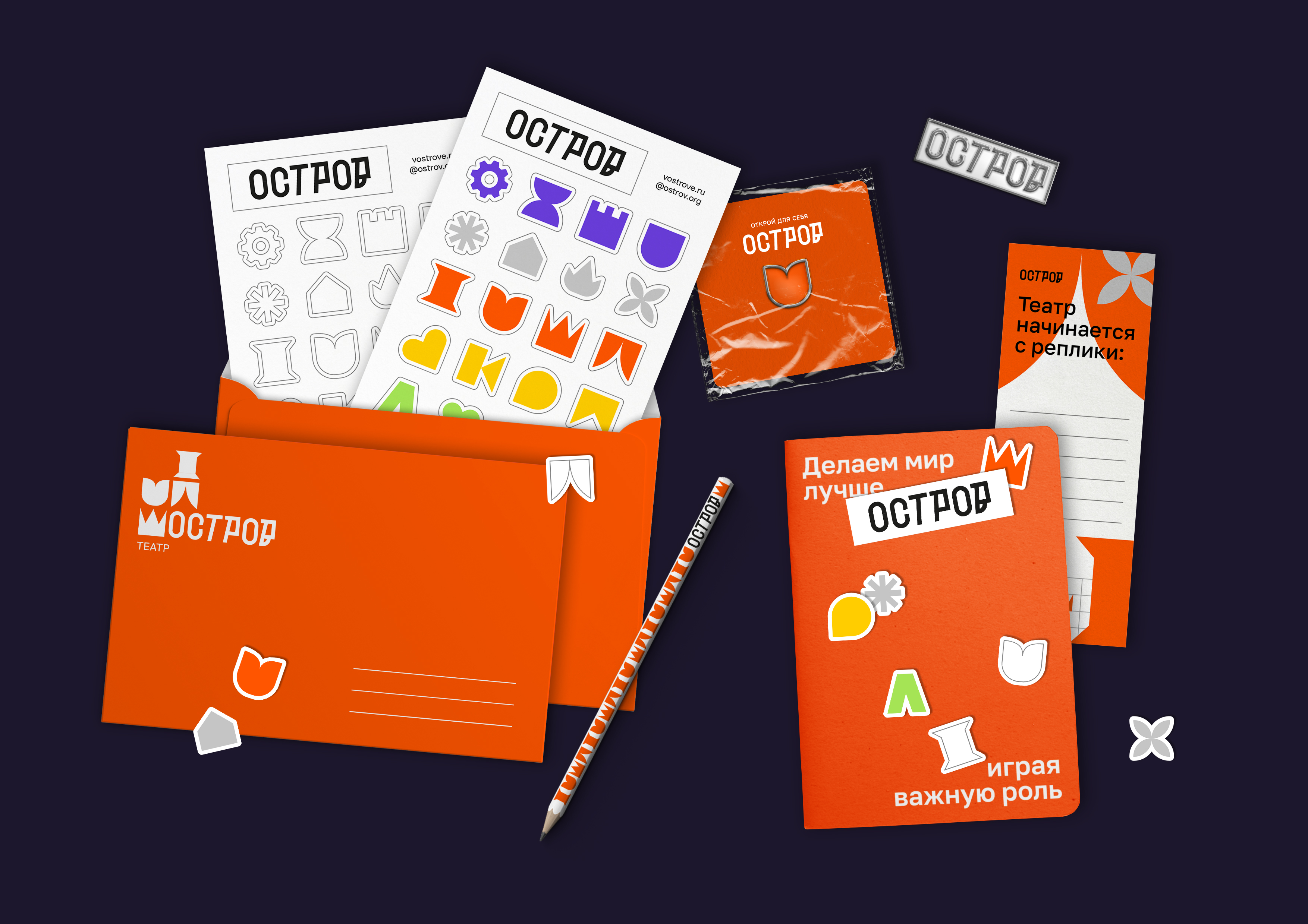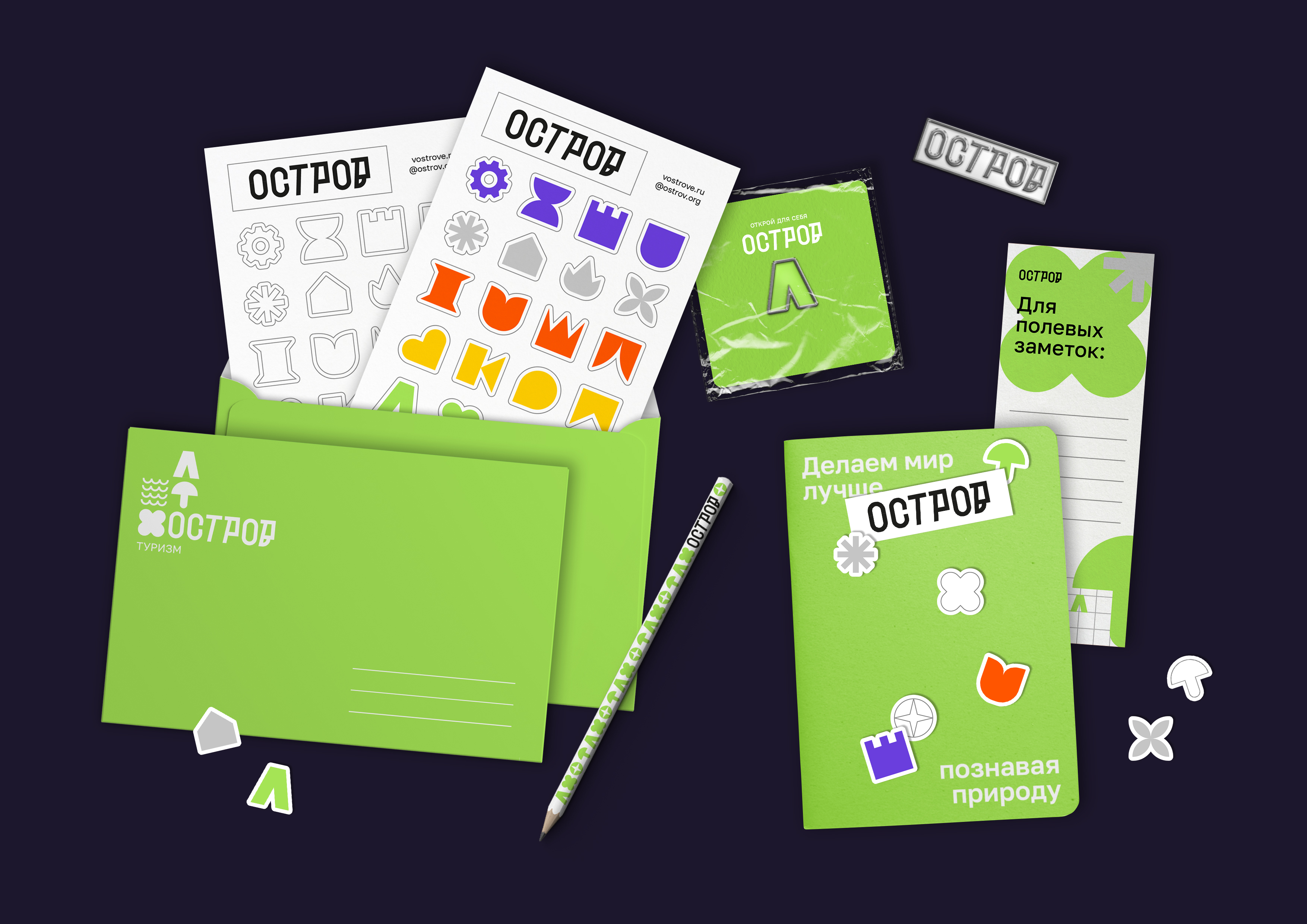 Ксюша: Мне нравится идея с кастомизацией вещей. Даже если взять, скажем, обычный блокнот, то на него можно будет наклеить стикеры тех направлений, которые тебе нравятся. Тогда это уже станет твой личный блокнот. Это опять же про идею конструктора. То же самое с наклейками на ноутбук. Касательно одежды, в моем идеальном представлении — это небольшие печати. То есть мы берем белую футболку с надписью «Остров» и сами выбираем, что отпечатать. Пожалуй, это можно реализовать еще с помощью нашивок. Мне нравится, что в проекте есть как мерч общий, так и мерч отдельно для каждого направления.