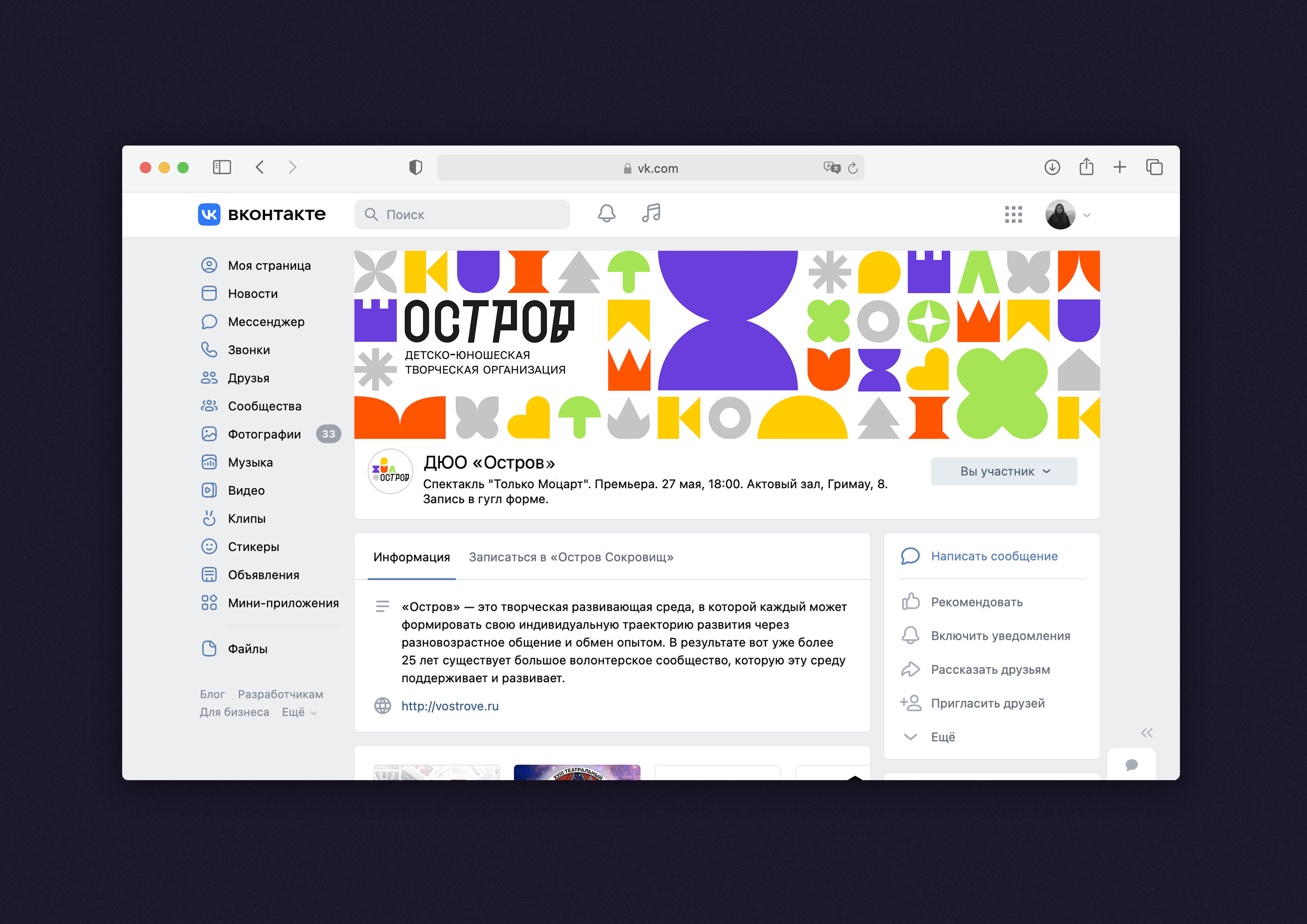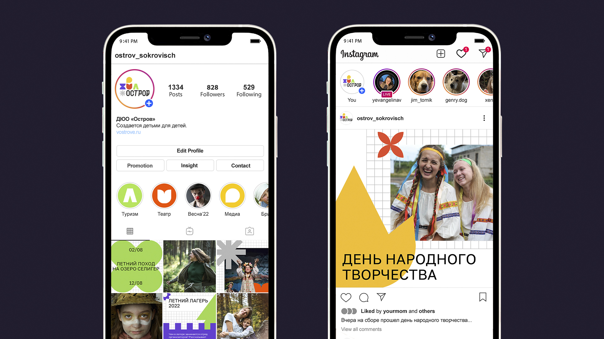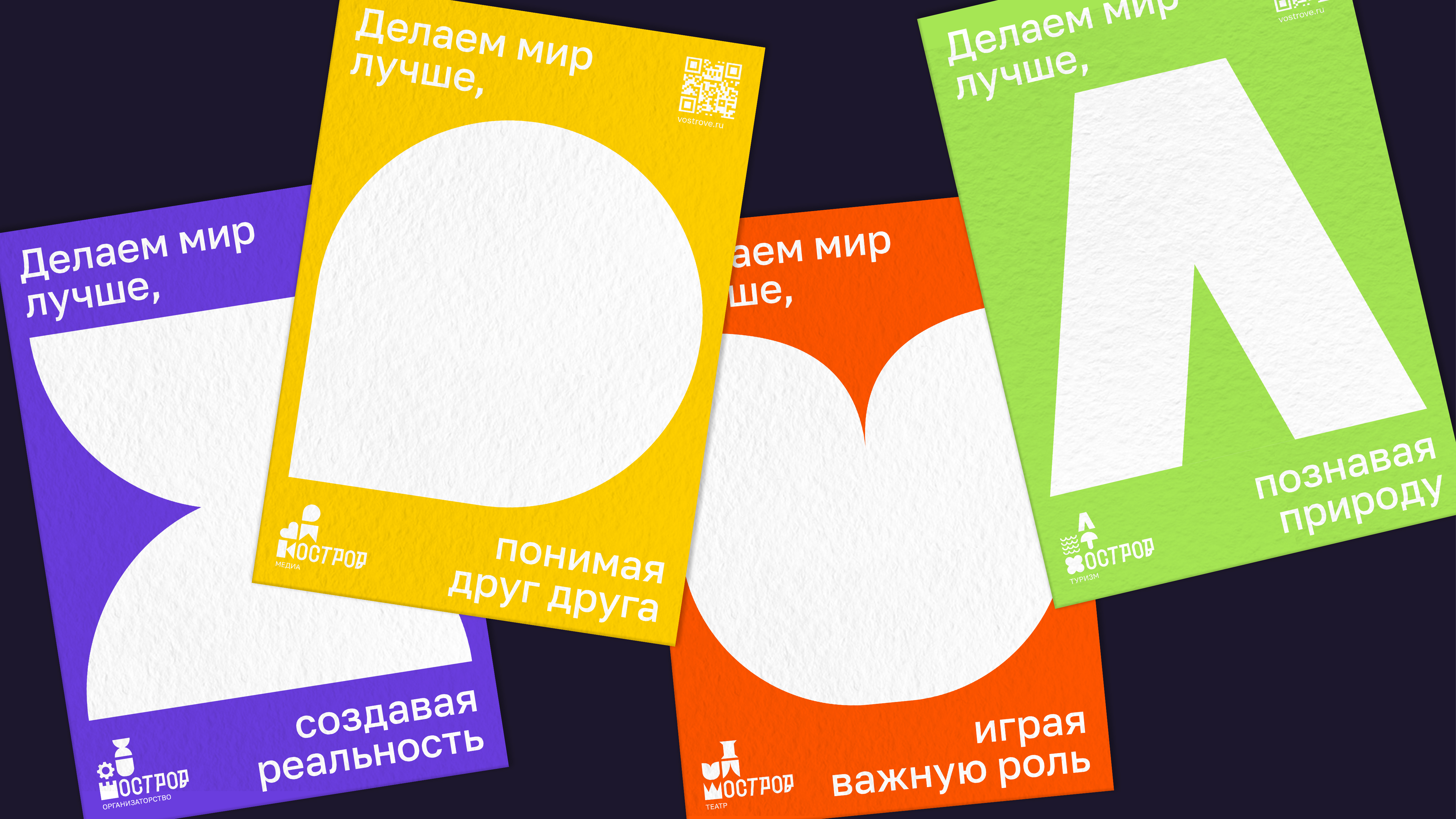 Ксюша: Правильно, метод конструктора не я придумала. Есть много организаций, не только детских, которые этот метод используют, когда хотят показать наличие разных направлений. Это и правда очень удобно. Мне кажется, что логотип не обязательно должен быть каким-то ярким и кричащим, чтобы привлечь к себе внимание. Он, во-первых, должен быть удобным и, что еще важно, он должен быть приятным и привычным для тех, кто будет с ним взаимодействовать. Сложно пропихнуть сумасшедший, новый и модерновый брендинг, если он не будет нравиться тем, кому предстоит с ним работать, если он не будет нравиться детям и родителям, которые будут видеть его. Мне показалось, что супер сложный путь — неверный путь для брендинга «Острова». К тому же мне хотелось, чтобы нам не понадобился личный дизайнер, который делал бы все афиши, посты, оформлял всю визуальную часть (или я должна была бы делать это всё сама). С тем методом, который выбрала я может работать в целом почти кто угодно. С таким дизайном можно научить работать подростков и руководителей организации.
