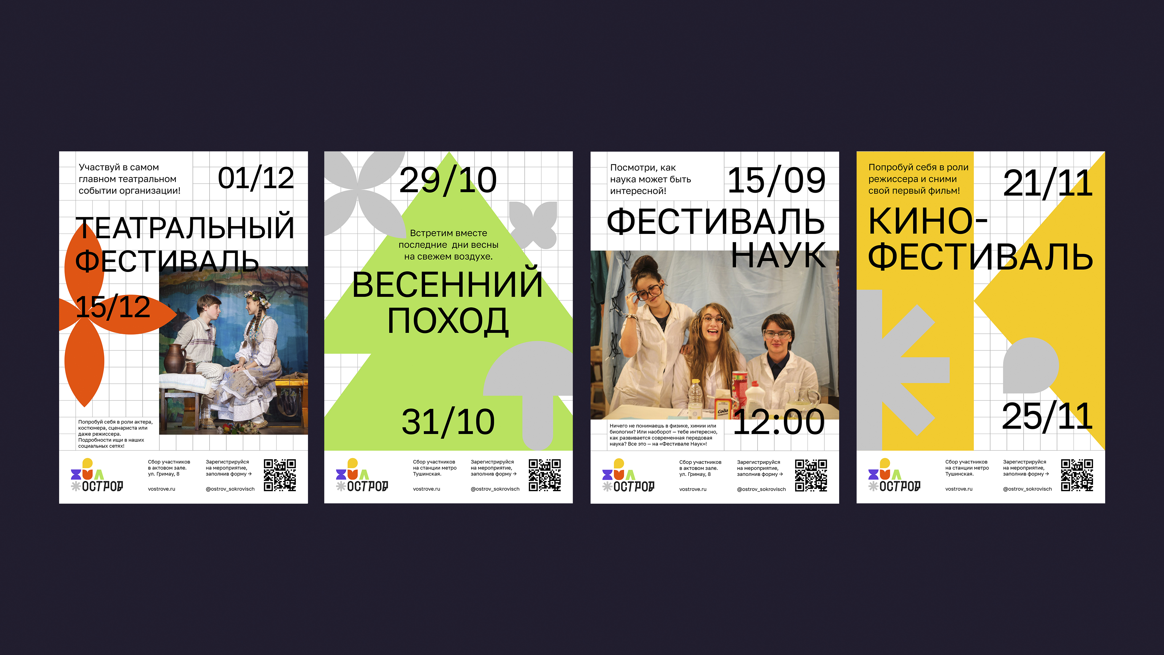Ксюша: В целом визуал хороший, но проблема в том, что у «Острова» не было брендинга, был только логотип. Если посмотреть в целом на то, как выглядел «Остров» визуально (отдельные плакаты, посты в соц-