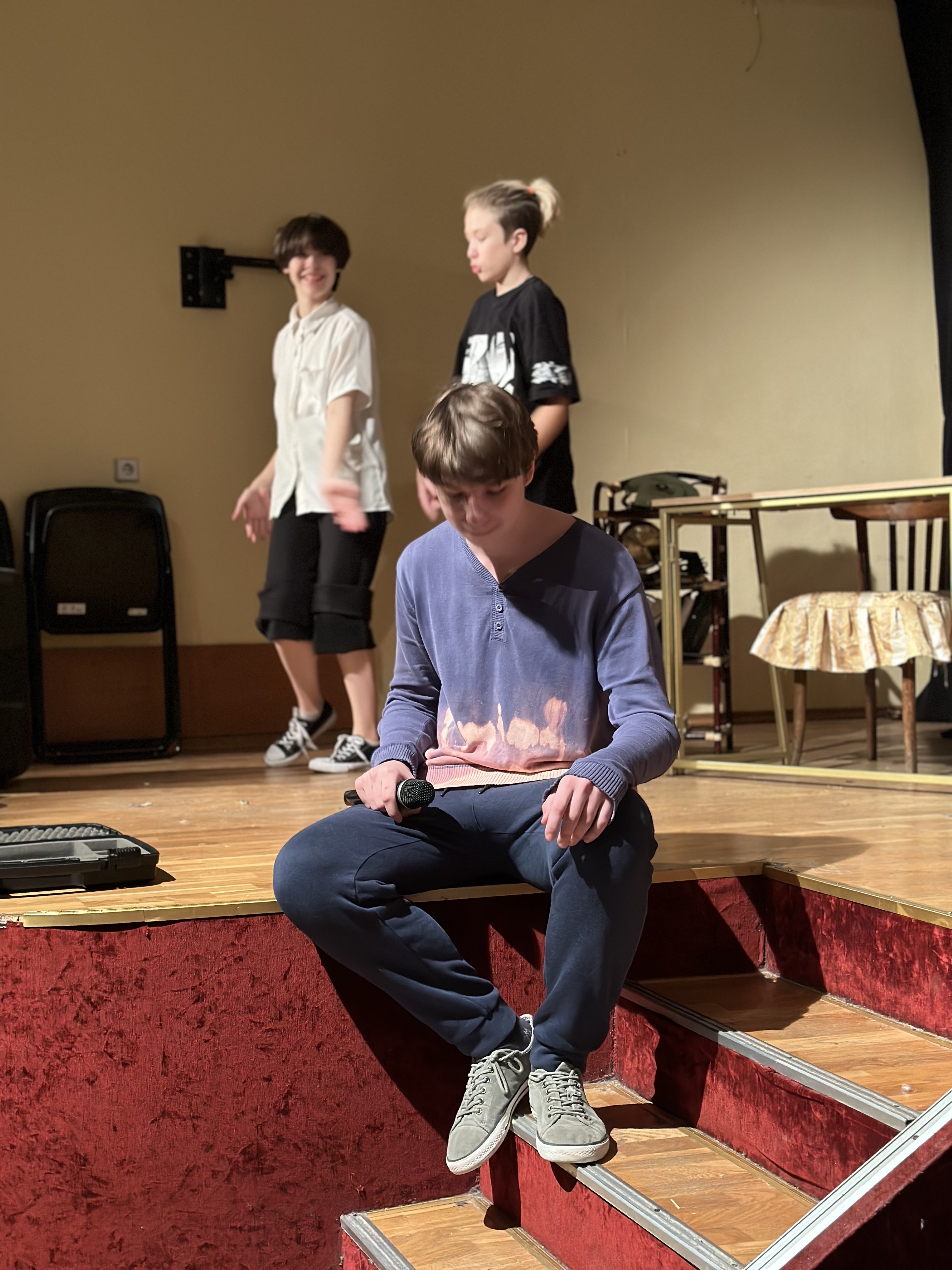 Мы с ребятами очень долго распределяли, кто какие декорации выносит… Была огромная путаница и пришлось составить целый список. Ещё мы часто не слушались Лену… Это, наверное, единственные проблемы в постановке спектакля.