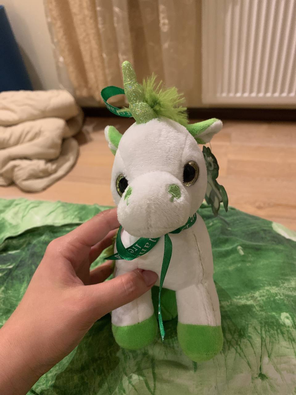 Мой символ отряда это небольшой бело-зеленый единорог с рисунком клевера, и его зовут Леппи. Имя ему придумала Маша Гапонова, которая была у меня в отряде, когда я первый раз взяла его в лагерь, в ЛТО 2021. Наш отряд тогда назывался Лёприколь, и это слово очень созвучно с Леприконом. Этот единорог приехал ко мне как сувенир из Ирландии, и, учитывая 100% соответствию названию отряда, он конечно же отправился со мной в лагерь. Почему же именно он? Я очень люблю зеленый, а в нем есть элементы зеленого…