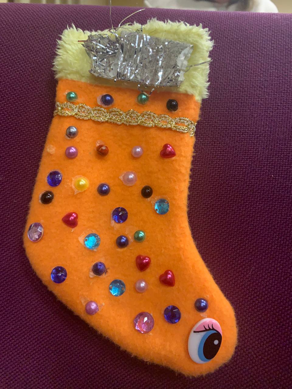 Носок появился 6 января в эколагере 2023 года. Он появился на дне «Кошмар перед рождеством». Был мастер-класс по по рождественским подаркам. Там был выбор делать новогодние шары для ёлки, сумку или носок. Я выбрала делать носок. Я выбрала рыжий цвет, и вдруг я увидела на полу глаз и решила приклеить его. Так и появился носок. Он уже успел побывать на всех мероприятиях Острова и даже несколько раз был символом отряда.