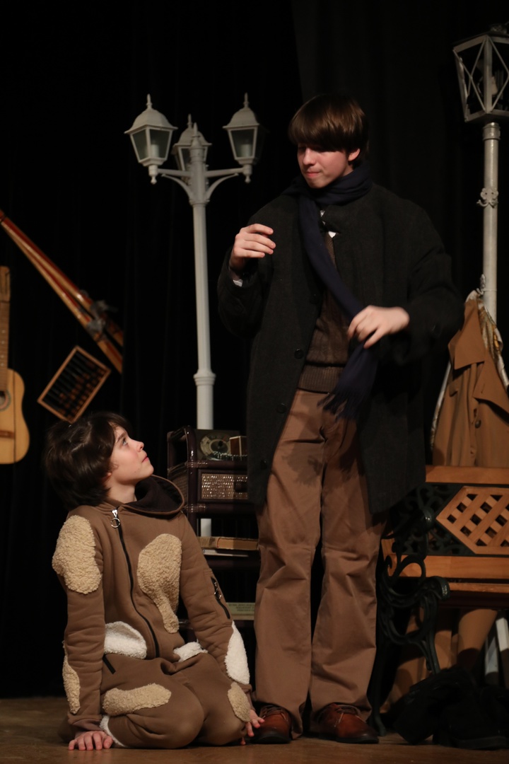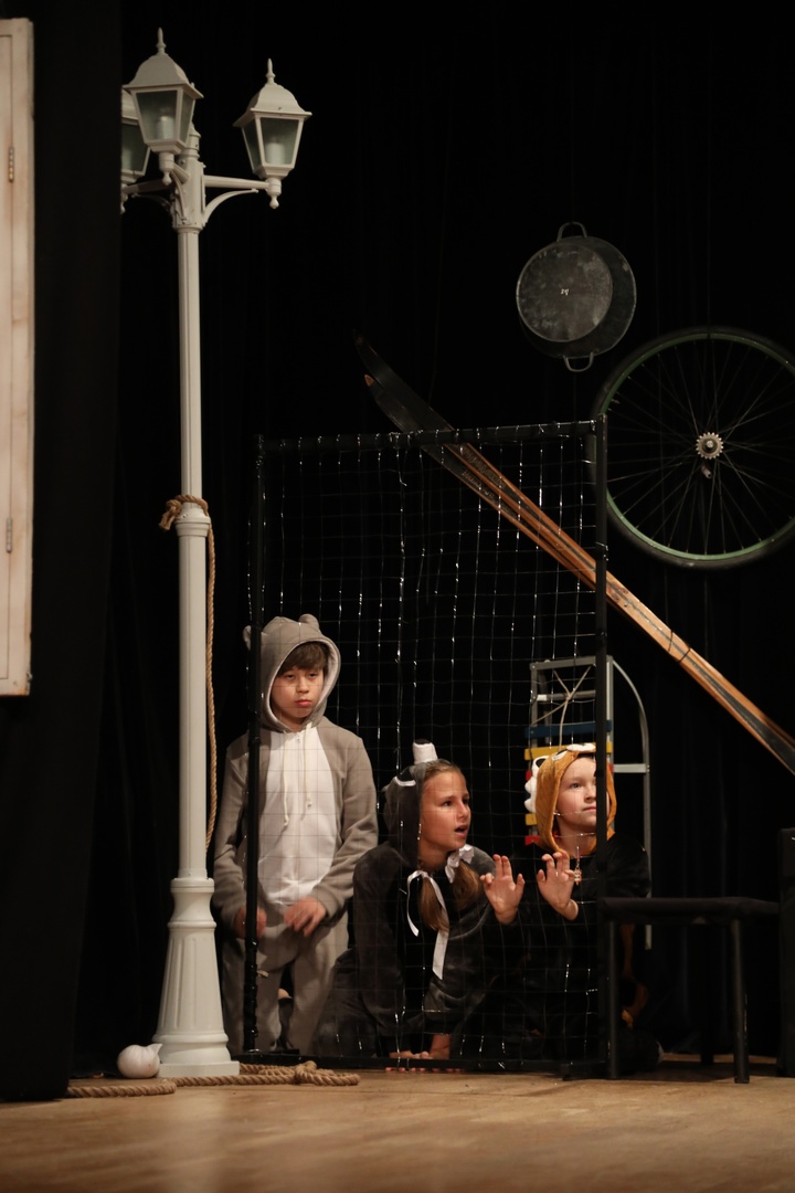 Студия вокально-театральная, но время от времени всё-равно есть крен в какую-либо сторону. Десять лет назад был исключительно поющий состав, и мы с ними много пели и пели многоголосно, ездили на конкурсы больше вокальные, соответственно, не успевали подтягивать драматическую часть, на полноценные спектакли не хватало ни времени ни сил, работали больше на номера и такие были спектакли-концерты. А сейчас состав, к сожалению, отчаянно «глухой», выезжаем только на хореографии и сценографии, зато им интересно играть. А вот мелкие растут вроде поющими. К слову об «инструментальной» — вы, как в воду глядите — мечтаю поставить спектакль с живыми инструментами самыми простыми — стучально-трещально-гудельными, но пока ничего в голове не зародилось.