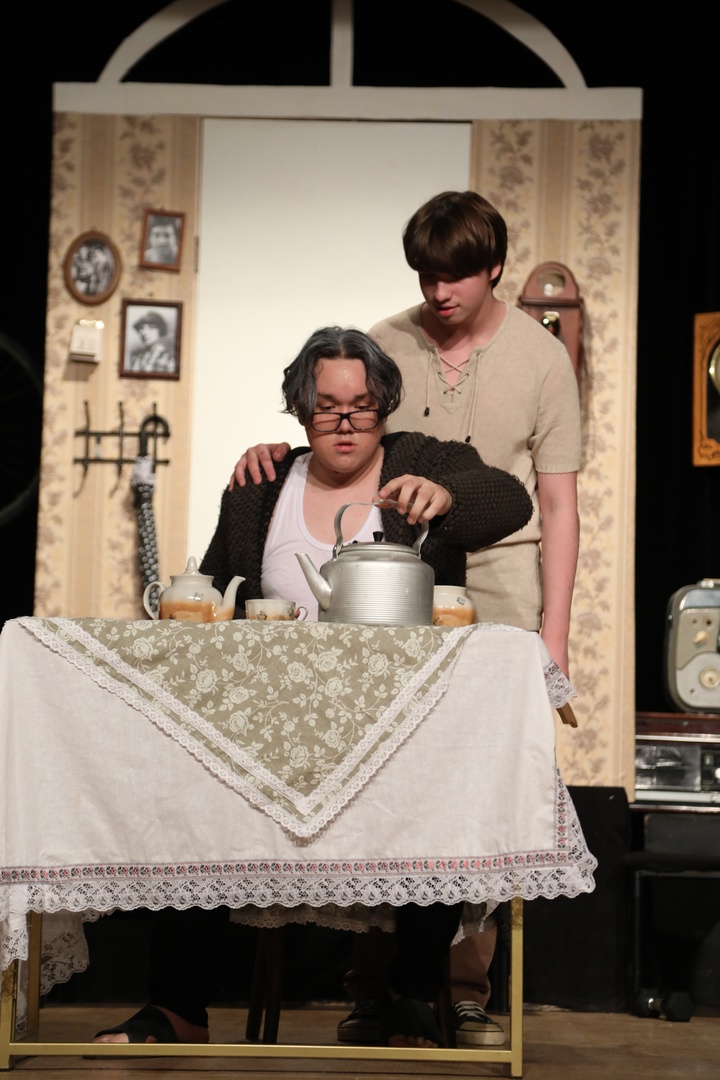 И здесь я наблюдаю важный, на мой взгляд, парадокс, на котором остановлюсь чуть подробнее. Фокус самой истории направлен на драму ребенка, до которого окружающему миру буквально нет дела. Каждый из персонажей живет своей собственной, обремененной бытовыми заботами, жизнью — всех ждут свои «простые радости Земли» в виде рисунков продуктов, ремонта, закрытой бутылки с молоком, дискотеки со сверстниками, достижения любовного интереса и вездесущей работы, работы, работы… В этом калейдоскопе мирского и «личного» и кроется подлинная трагедия Анны-Марии — ей не с кем разделить всю ту бурю внутренних переживаний и свое видение мира, свои чувства и свои мысли. Наиболее близкий к ней романтик Володя (Сережа Медведев), «непристроенный», притягательный и свободный в своем образе жизни, которому пожилой сосед предъявляет за отсутсвие детей в его возрасте и беспечность отношения к жизни, — даже он больше озабочен решением «проблемы любви» с измученной бытовыми заботами на работе и навалившимися трудностями Лидией Ивановной (не случайно по имя-отчеству, в отличие от «вечного ребенка» Володи, который искренне не понимает, почему Лида хочет вечером выпить чаю, а не его распрекрасное сладкое итальянское вино) больше, нежели внутренним миром девочки, заигрывая с ней и даря ей свое «волшебство», но никогда не выходя на подлинный диалог (разве что, опять же, в ее воображении ближе к концу пьесы), что подчас выражает даже открыто («Дети, дети, куда ж вас дети»).