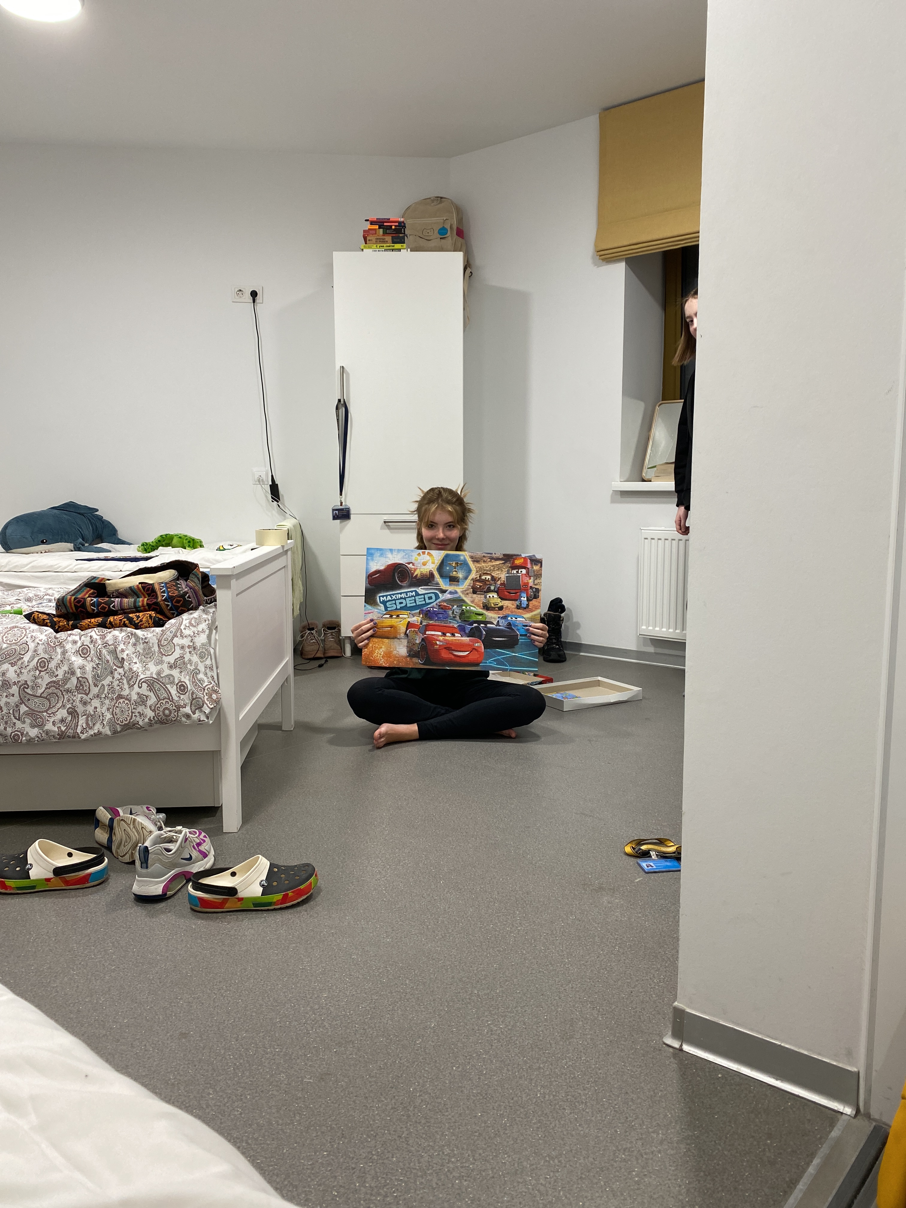 В восьмом классе я жила с подругами, и нам было очень весело вместе. Мы жили вчетвером: ели торты и мороженое, спали на полу, танцевали, смотрели фильмы, забирались на шкафы, вместе учились эффективно заправлять кровать… Скучаю по ним! Но мне все-таки тяжело не иметь полностью своего пространства. Очевидно, режим сна надо подстраивать под соседей. Стучащая клавиатура бесила половину жителей нашей комнаты по утрам (это печатала я), а половину по вечерам (это печатали мои подруги). Однако основным минусом для меня была ванная… На мои вещички никогда не хватало места…