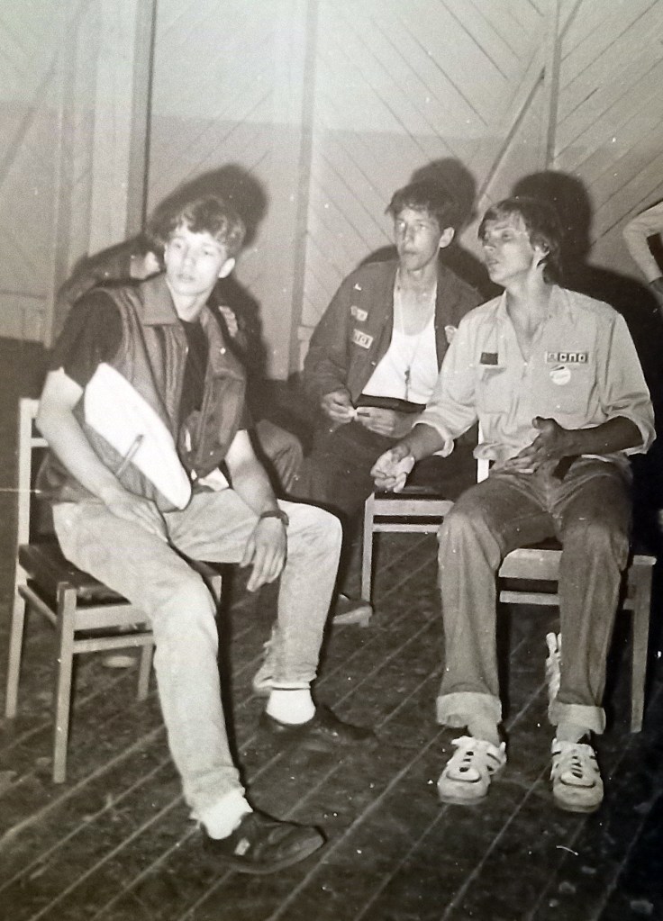 Виталий Викторович: Педагогический отряд «Эврика» был создан на базе математического факультета педагогического института в основном для того, чтобы студенты проходили практику в лагерях. Но буквально с первых лет существования он превратился в коллектив единомышленников, которым было хорошо вместе и которые имели одну цель — обеспечить ребятам в лагерях интересную и насыщенную жизнь. Потом часть этого коллектива превратилась в компанию, команду, которая ездила по лагерям и готовила развивающие программы, справляла вместе дни рождения, ходила в походы. В «Эврику» меня затащил Дмитрий Александрович Путимцев сразу после окончания школы. Мы с