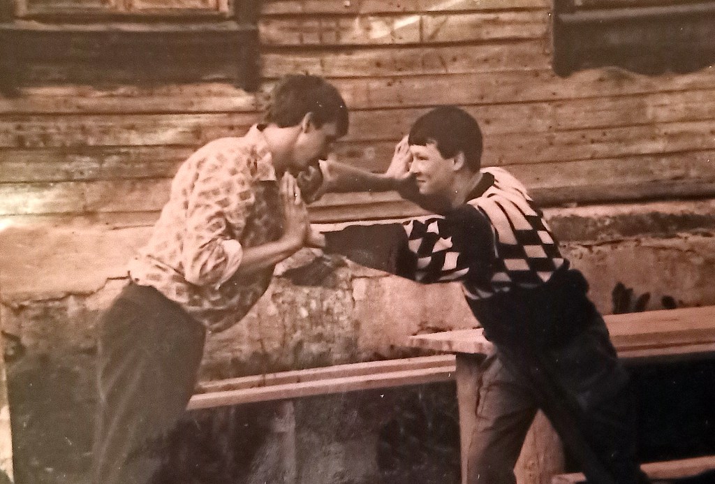 Виталий Викторович: Да, мы работали на соседних отрядах в одном корпусе. Вечерами мы все (вожатые разных отрядов) собирались, пили чай, пели песни, готовили мероприятия на следующий день. Как я уже говорил, мы были в одном коллективе, так и познакомились. Это был 1991 год.