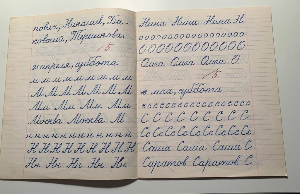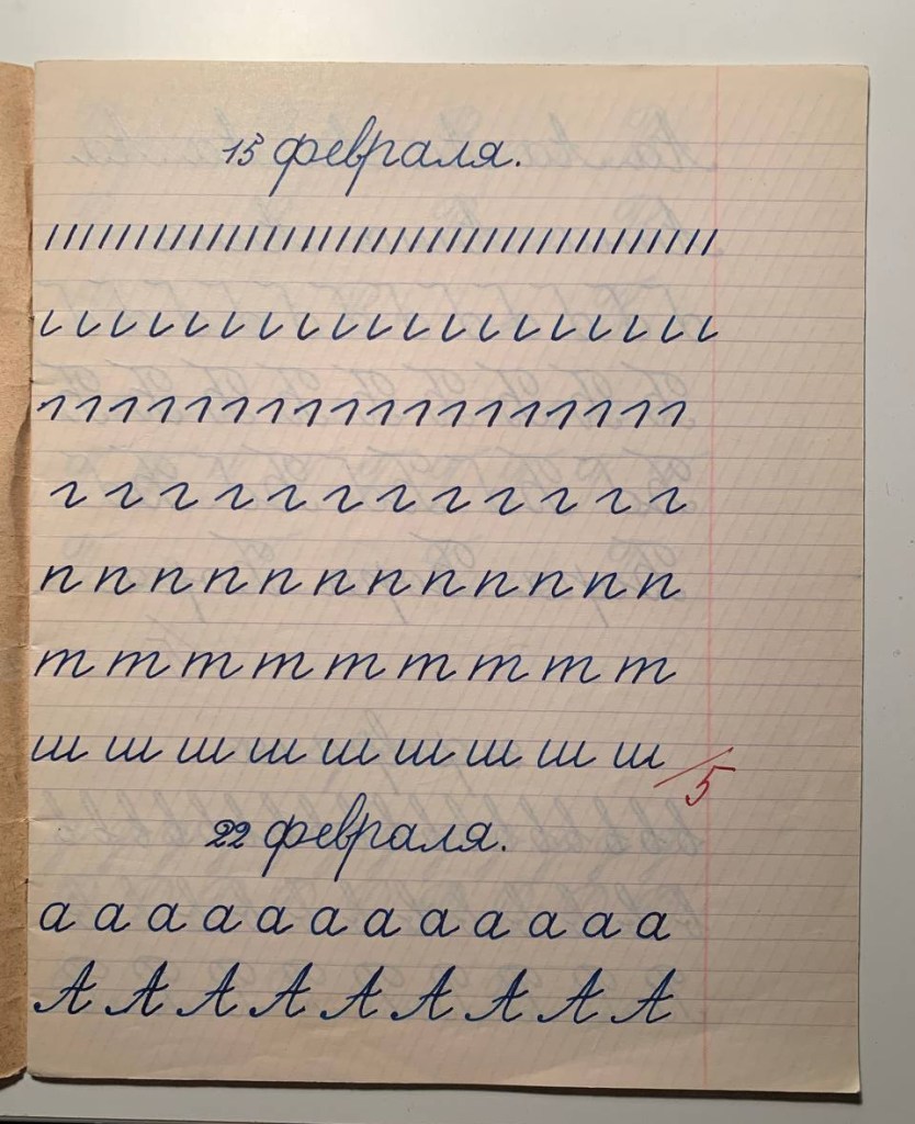 Тетрадь по чистописанию Татьяны Ивановны Петриченко, бабушки Феди Лаврищева. 1963-1964 учебный год.