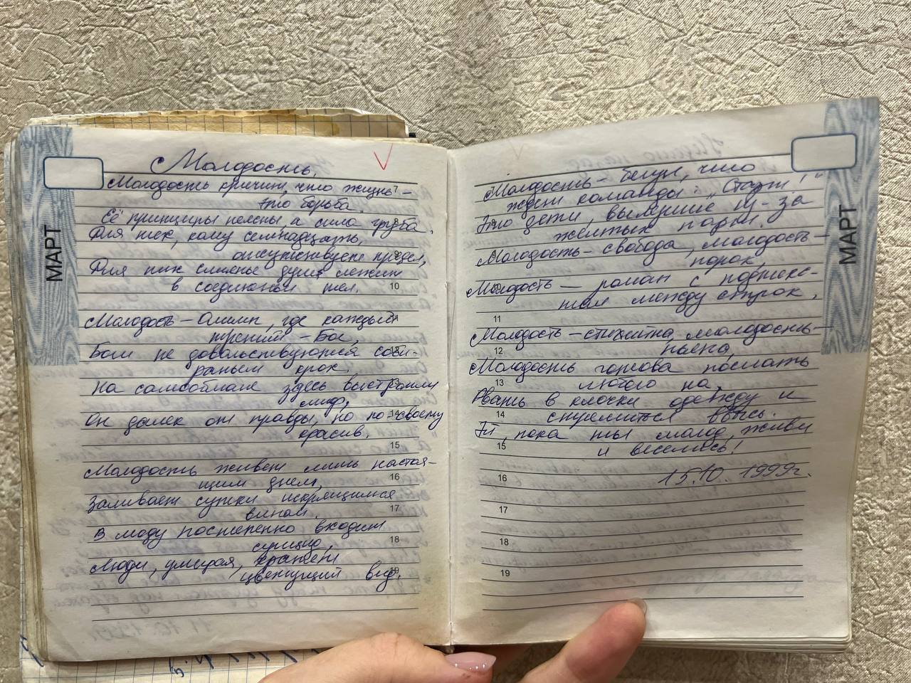 Маша Лаврищева: В 1999 году я была студенткой второго курса филологического факультета МПГУ. В огромных аудиториях здания на Фрунзенской мы, ежась от холода (даже верхняя одежда иногда не спасала), слушали и конспектировали лекции разной степени увлекательности. Если степень была низкой, то я параллельно что-то сочиняла в той же тетради. Так в октябре и родилось стихотворение «Молодость». Оно было написано очень быстро и практически не подвергалось редактированию после. Сейчас это вызывает у меня самой улыбку, но тогда, в 18 лет, я жутко гордилась тем четверостишием, которое не вошло в официальную версию будущей песни, но которое с удовольствием распевают островитяне. Там еще рифмуются «пьяна» и «на».