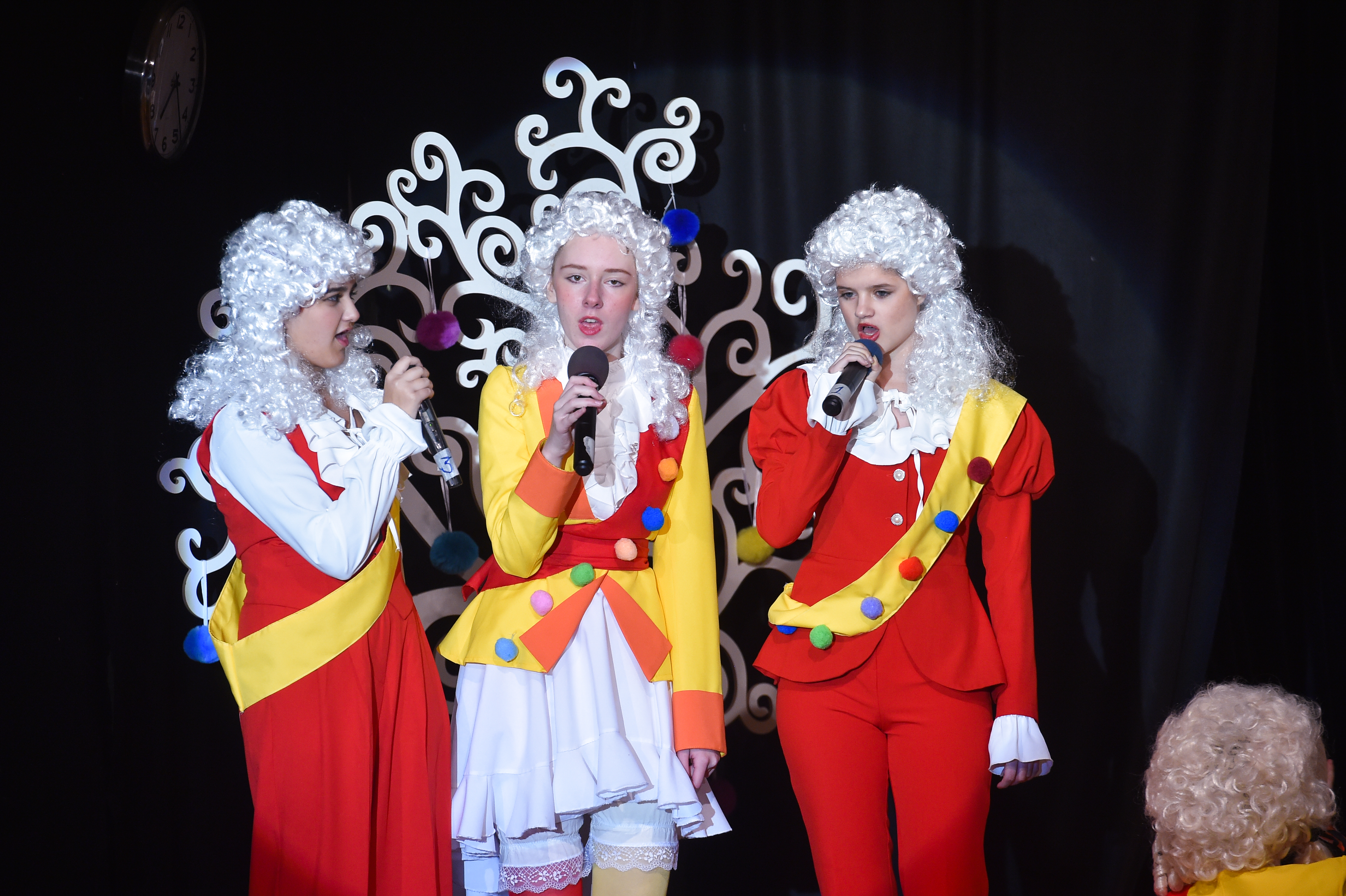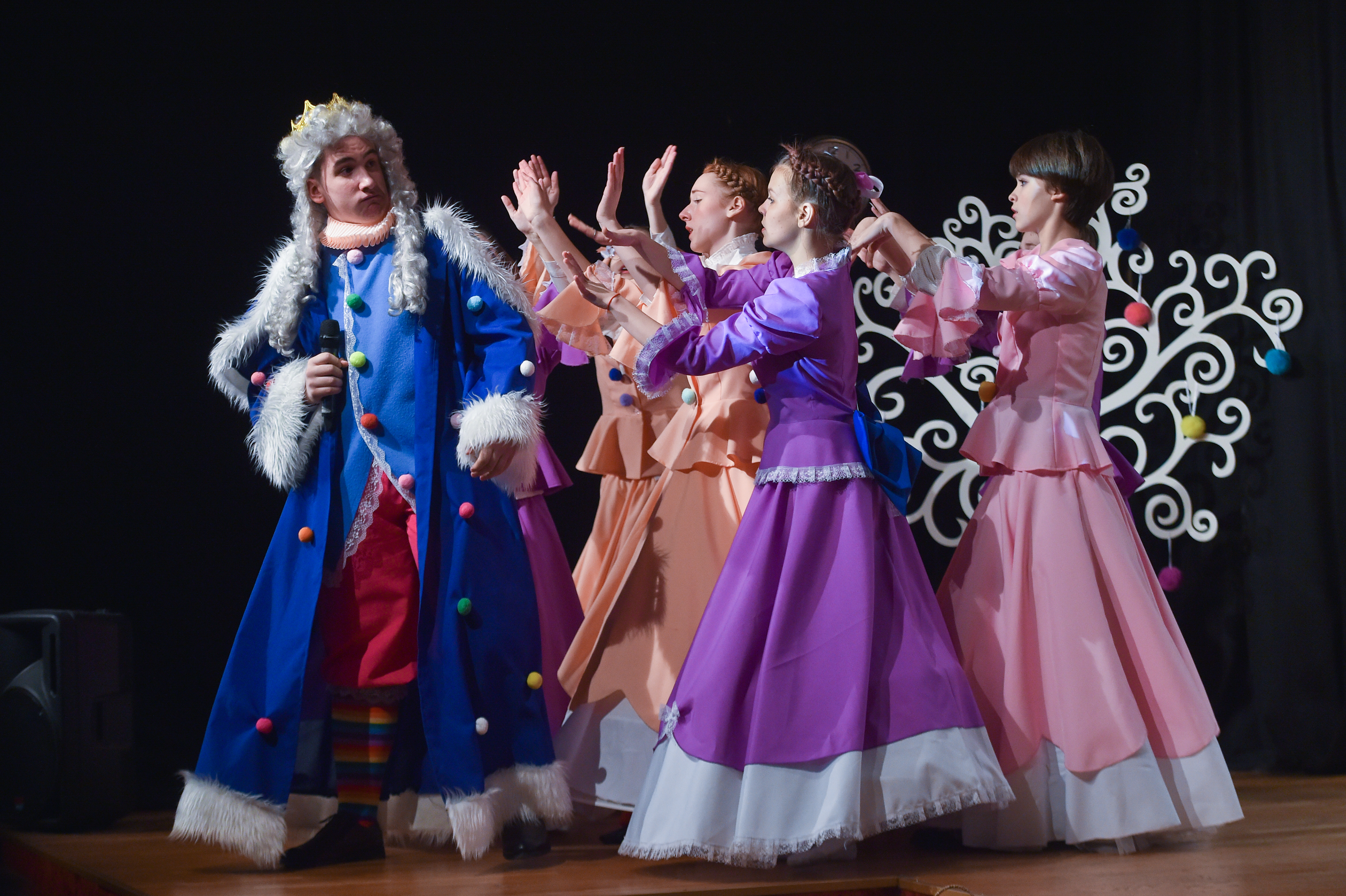 Я убежден, что во многом (если не во всем) это заслуга потрясающего Сергея Николаевича — ему удается связать все эти песни воедино стилистически (хотя многие из них изначально заходят с совершенно разных «полюсов» — особенно это касается «новых» песен, написанных именно для спектакля этого года). Скажем, песня Короля-жениха за авторством еще одной важной для этого спектакля семейной пары наряду с Щербаковыми — Марии и Алексея Лаврищевых, это — изящная языковая и музыкальная игра с «западным» медленно-рок-н-ролльным стилем, а песня Камергера Саши Тимашковой — наоборот, прямолинейная, почти «дорожная» со знакомыми нотками «Авторадио» и этакой «народной» энергией, помноженной на низкий пробивной бас исполняющего ее Вовы Янова. Как их примирить вместе в одном спектакле? Сергей Николаевич, кажется, интуитивно чувствует ответ на этот вопрос и знает какую-то магию, которую активно практикует и «вне Хогвартса». При прослушивании песен из «Принцессы и Свинопаса» не создается ощущения того, что некоторые из них выбиваются из общей гармонии — да, безусловно, как у нас часто бывает, есть своеобразные «песни-филлеры», которые почти в полном составе ложатся на исполнительницу роли Волшебного горшка Ксюшу Ирбахтину (и такое бывает), требуя не «развивать сюжет», но «занимать время вокально-инструментальными номерами» как вполне оправданно (например, «Грустная песня Горшка» логически отсекает разные части истории), так и местами, возможно, чрезмерно (а вот функция «Веселой песни Горшка» понятна уже сильно меньше). Вместе с тем, каскады песен во второй части спектакля задают пространство для увлекательной игры действующих лиц, не переходящих на прозу — видно, что Сережа Медведев, Федя Шпаков и Костя Вартанов искренне «играют» в эти песни как с министром нежных чувств, так и с поэтом и первым министром (этакий «марафон», который нужно пробежать с улыбкой и на каждом новом этапе предстать по-новому).