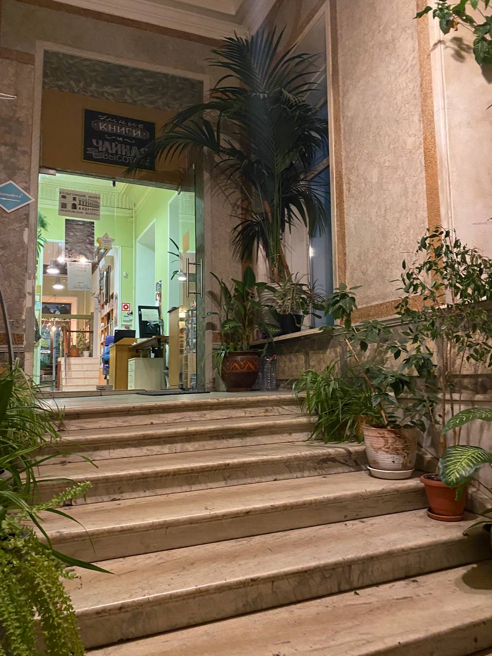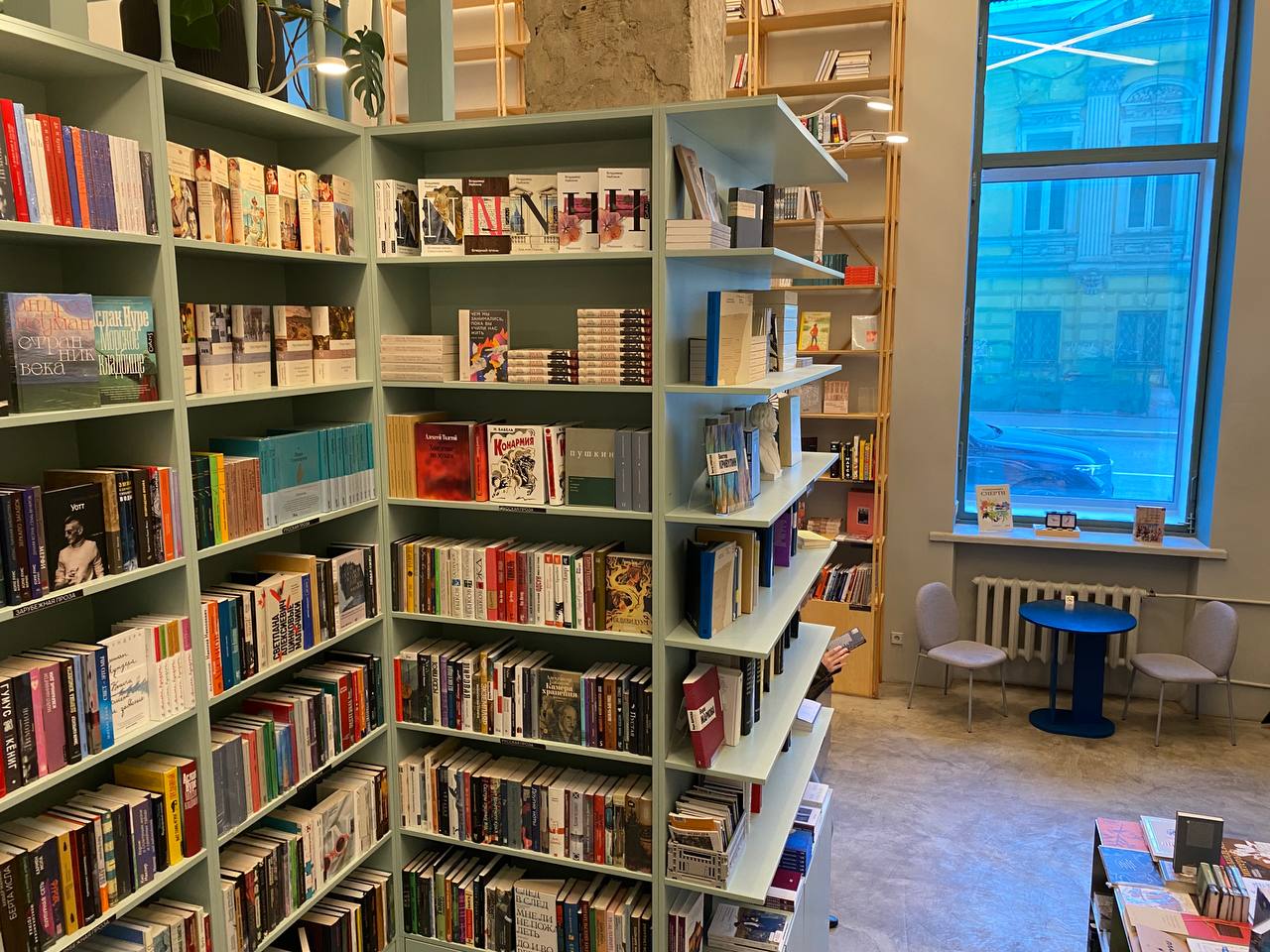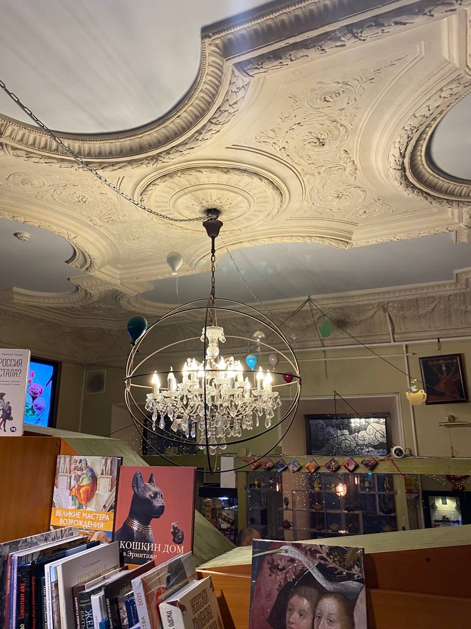 Следующая точка — небольшой магазин с красивым оформлением и расслабленной, немного, пожалуй, джазовой атмосферой. Он существует уже 20 лет. Здесь можно найти множество книг — про искусство, философию и другие гуманитарные науки, детскую и художественную литературу, а также множество сувениров. Рядом находится дом чая и мороженого «Чайная высота», где приятно посидеть, полистать книги и насладиться чаем.