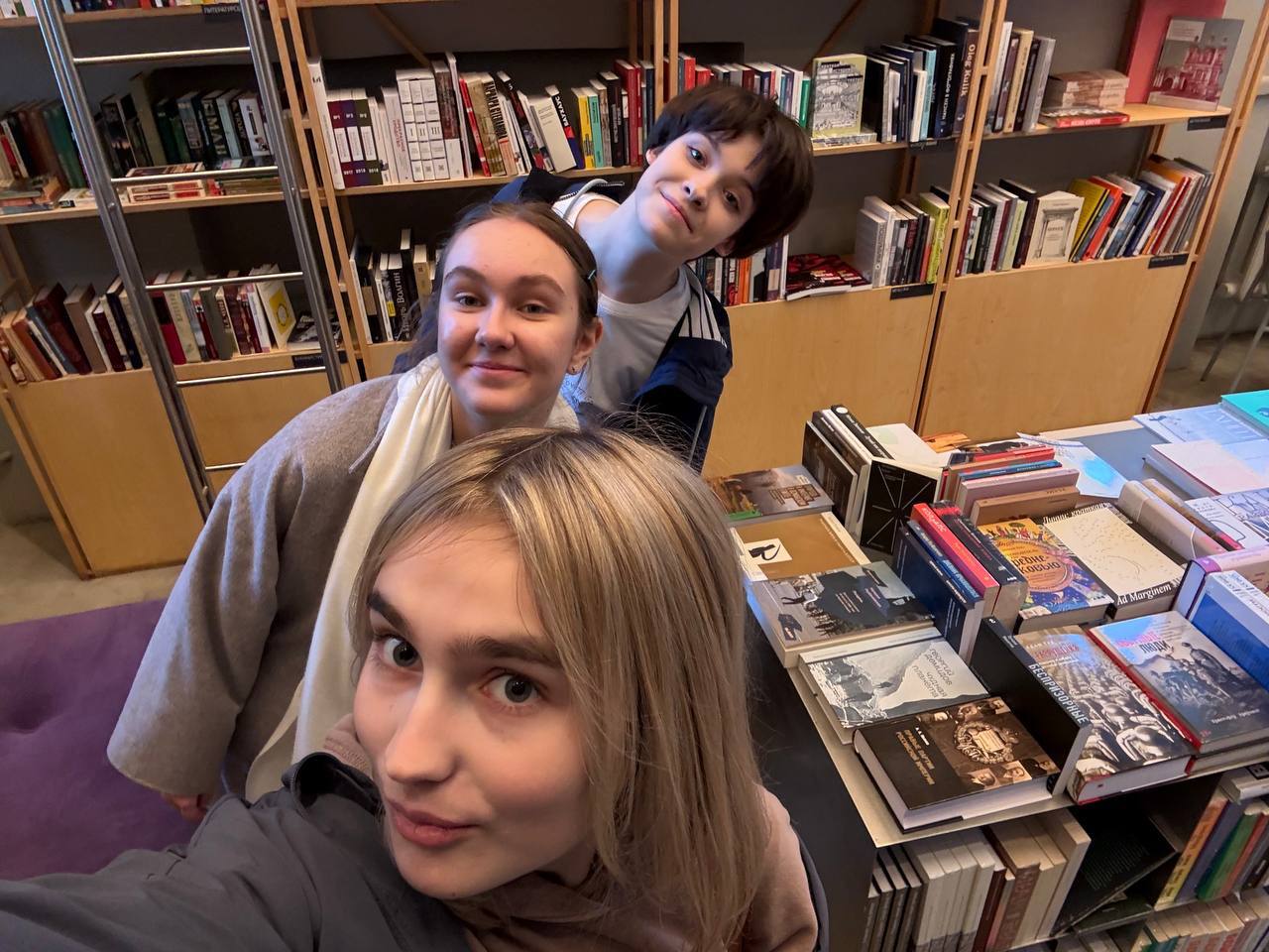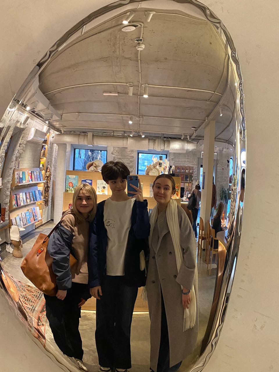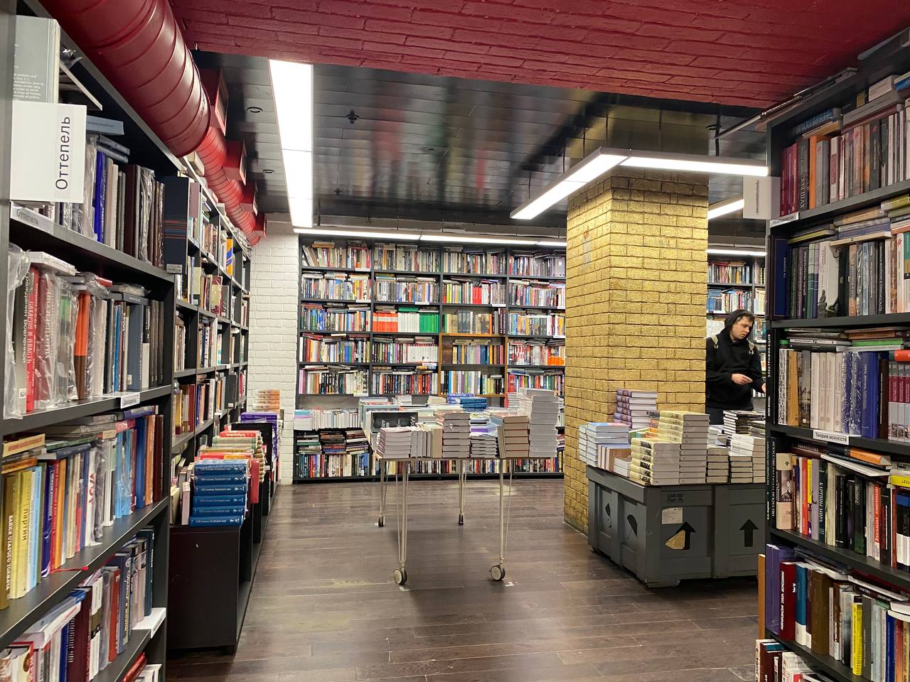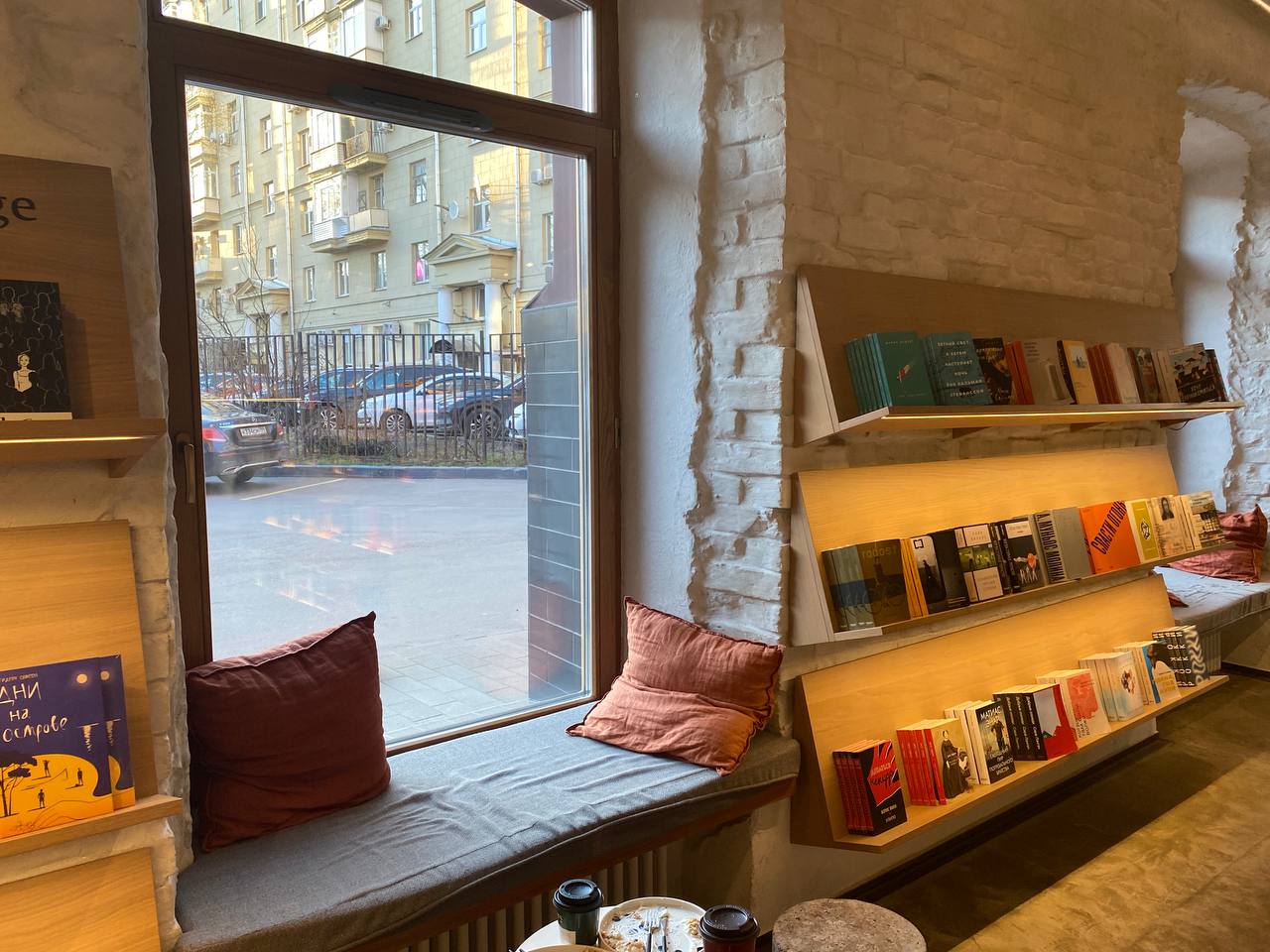 Чтобы попасть сюда, нужно доехать от Китай-города до Пушкинской, а затем пересесть на Тверскую. Этот магазин — самый большой, который мы видели за весь день. Здесь продаются тысячи книг всех жанров — от классики до современной прозы. Он очень красиво оформлен, и по нему интересно просто гулять, даже если ничего не собираешься покупать. Несмотря на то, что кофейни в самом магазине не было (но их довольно много рядом), это место всё равно показалось нам очень хорошим.