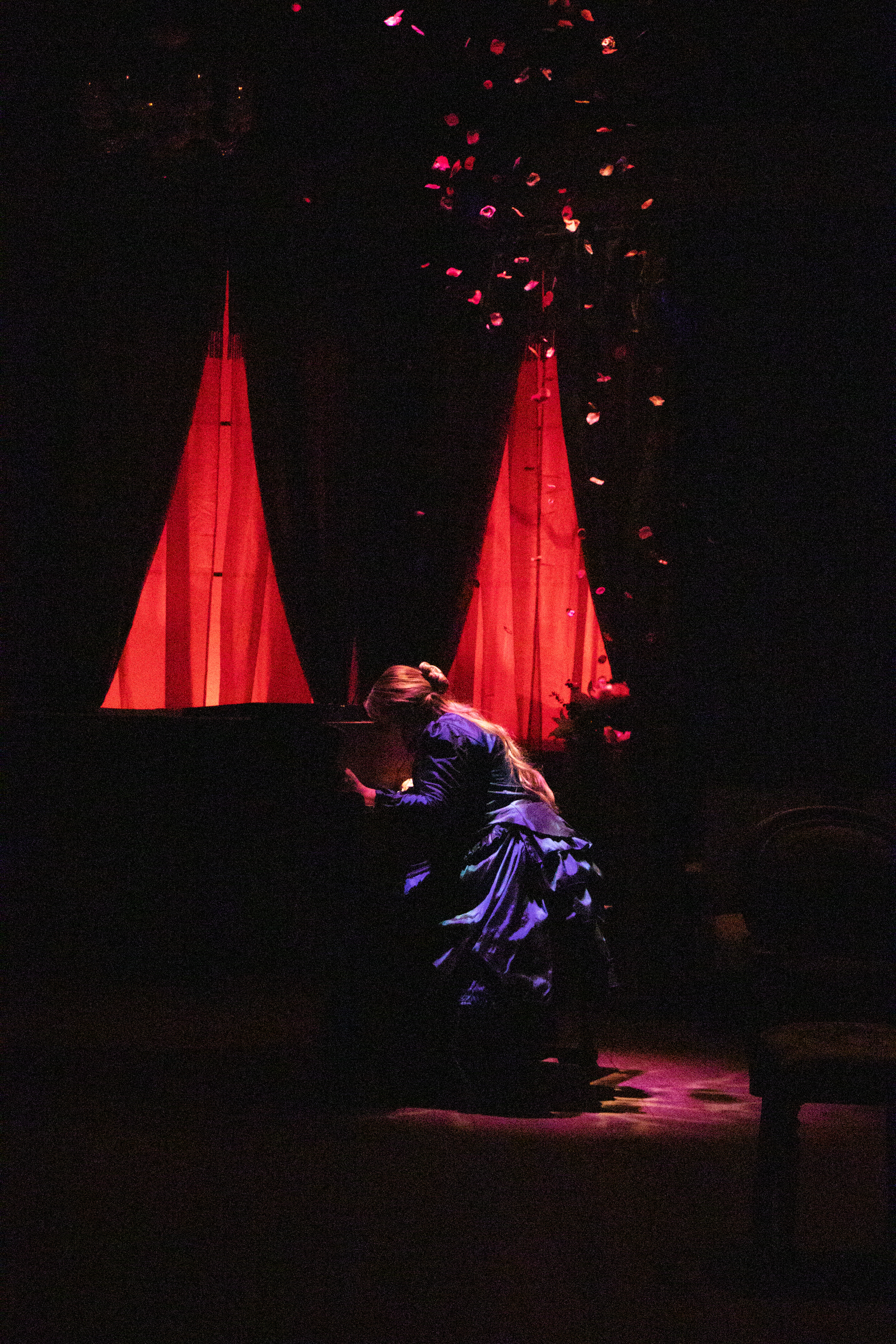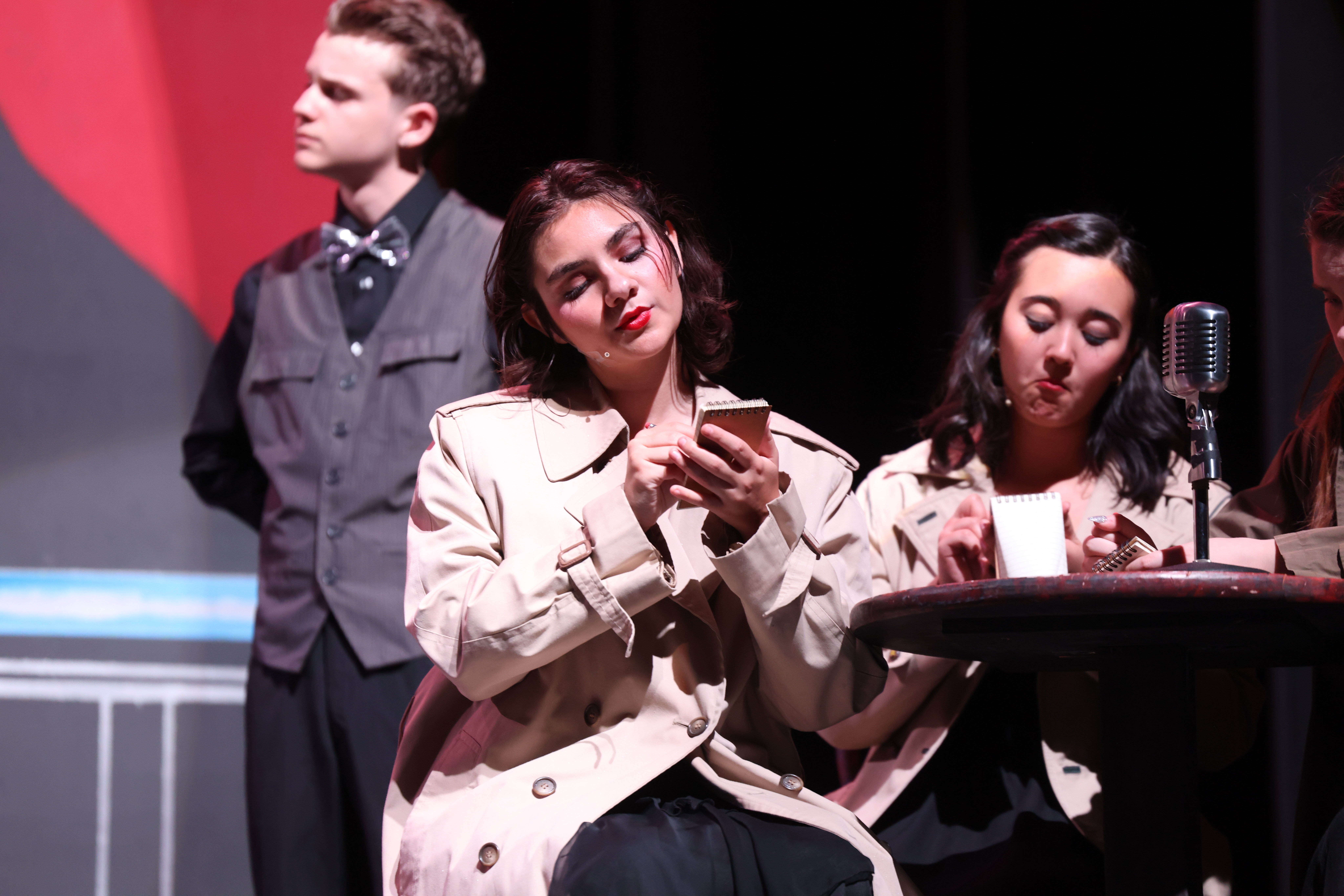 Репетиции в каждом классе разные, но для каждого спектакля и концерта нужно проходить прослушивание на персонажей. Музыкальный театр особен аспектом музыки, мы разбираем композиции, ансамбль вместе пропевает гармонии и мелодии, для этого нас делят на партии. Для больших спектаклей ежедневные репетиции до вечера начинаются за месяц до показа, на них мы ставим действие и хореографию. Сейчас, за две недели до показа, начался самый скучный для меня процесс, технический, когда ты часами стоишь на сцене, пока режиссеры работают со светом в моменте какого-то действия. Для больших показов, на большой сцене настраивают микрофоны, каждому индивидуально, то, как сидит на ухе и как звучит. В общем, каждая репетиция запланирована и расписана, и ожидается, что стабильно приходят все.