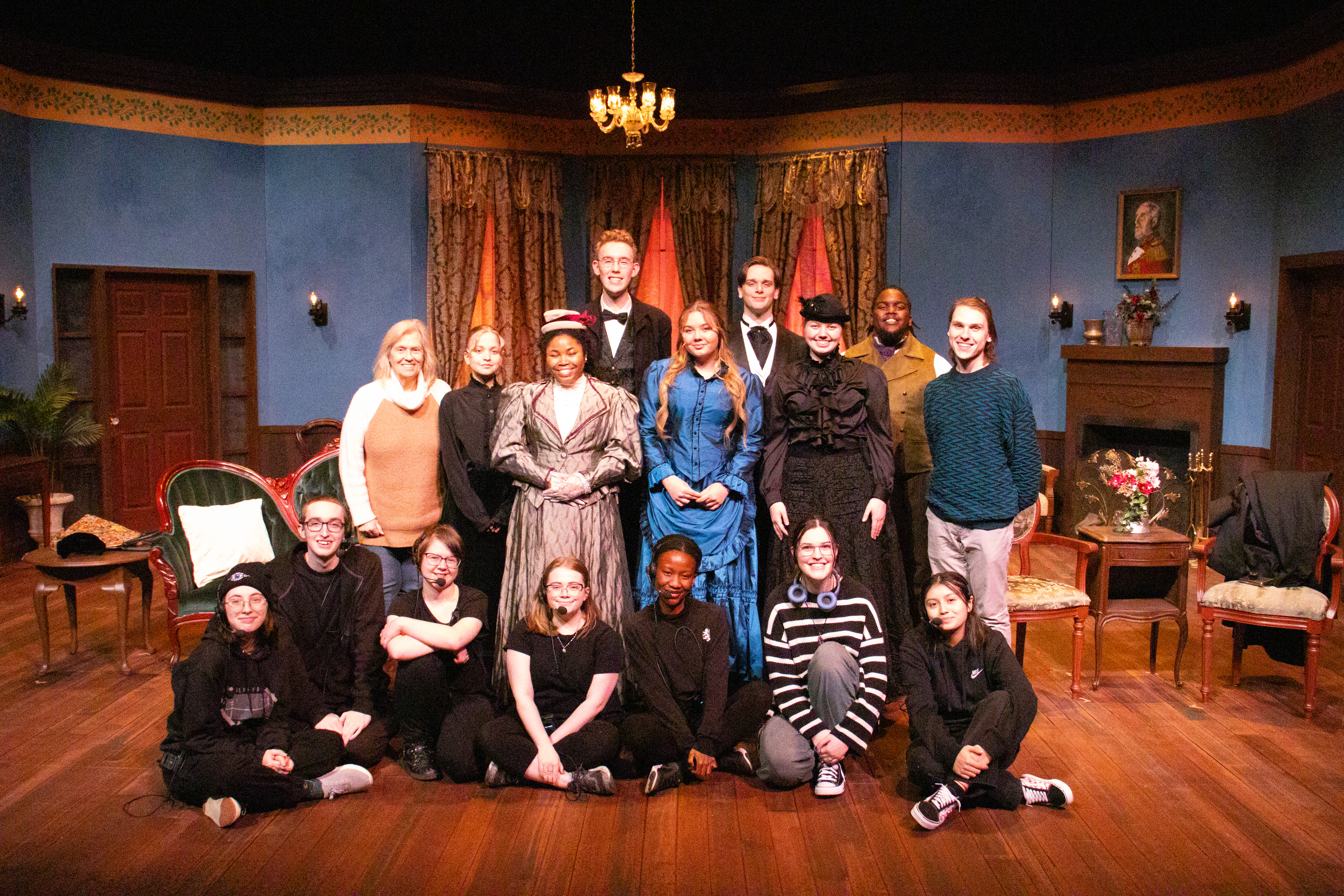 Есть 2 варианта: театр как «работа» и пара по театру! Объясняю: есть большое количество пар по предметам театра — от дизайна костюмов до того, как правильно выбирать музыку для спектаклей. В общем, очень много, и перечислить каждый очень сложно. Еще есть профессионалы, которые занимаются работой над спектаклем: костюмеры, режиссеры, декораторы и так далее! Но на самом деле их у нас не так много, и все они — супервайзеры для студентов. И основную часть работяг составляют студенты. По большей части они уже работают здесь около одного-двух годов, совмещая работу с учёбой, поэтому очень хорошо во всём ориентируются. Наконец есть ещё актеры, кем я и являюсь. Я немного участвую в работе с костюмной частью, но со спектаклем, который сейчас ставят, я не помогаю.