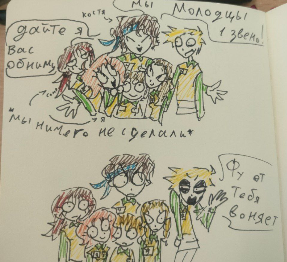 Как только мы приехали в лагерь, честно, я очень, о-о-очень сильно паниковала, нервничала. Ведь игра идет строго по сюжету, при одном нарушении сразу на вылет! Я всегда к таким вещам очень серьёзно отношусь, мне страшно допустить ошибку. О-о-ой, как же мне было стыдно иногда.( Но зато было весело!